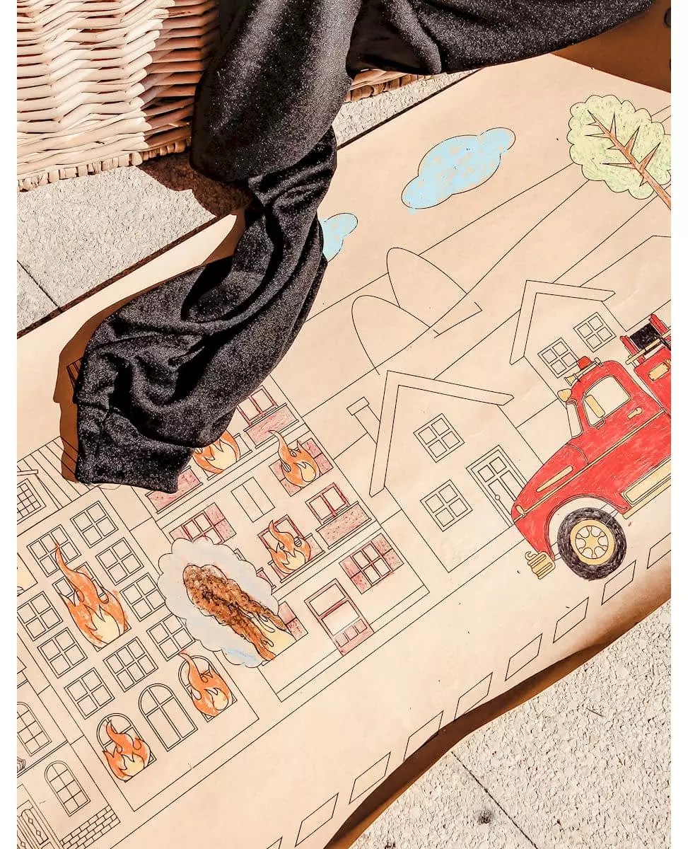 En 2-i-1-bordløper: borddekorasjon og underholdning! Denne bordløperen er laget av kraftpapir og forestiller et brannmann-tema-landskap å fargelegge. Den måler omtrent 140 cm lang og 40 cm bred. Det vil være en ideell aktivitet for å underholde barn på en brannmannbursdagsfest! Inkludert tilbehør: 1 bordløper å fargelegge Materiale: Kraftpapir