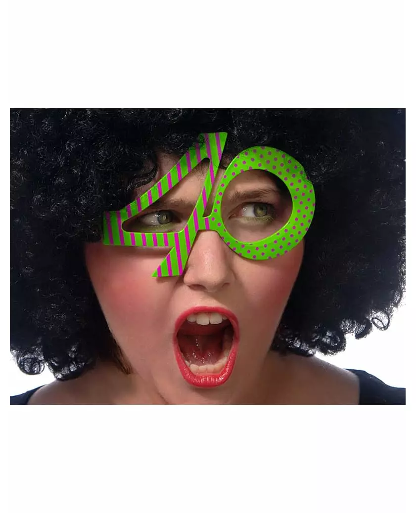 For en fargerik bursdag! Disse brillene er for voksne. De er laget av stiv plast og representerer tallet «40». Disse brillene er grønne med rosa striper og prikker, og måler omtrent 14 cm i lengden. De vil være det ideelle tilbehøret for å feire 40-årsdagen med humor. Inkludert tilbehør: Briller Materiale: Plast