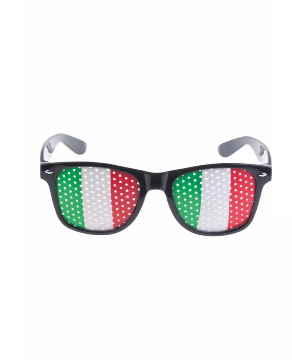 Viva Italia! Disse supporterbrillene med italiensk flagg er for voksne. De er laget av plast. Brillene er dekorert med italienske flaggklistremerker limt direkte på dem. De har en rekke perforeringer som gjør at du enkelt kan se gjennom dem. Disse brillene vil være perfekte for å fullføre ditt italienske supporterantrekk under sportsbegivenheter som VM! Inkludert tilbehør: 1 par briller Materiale: Plast Stell: Håndvask