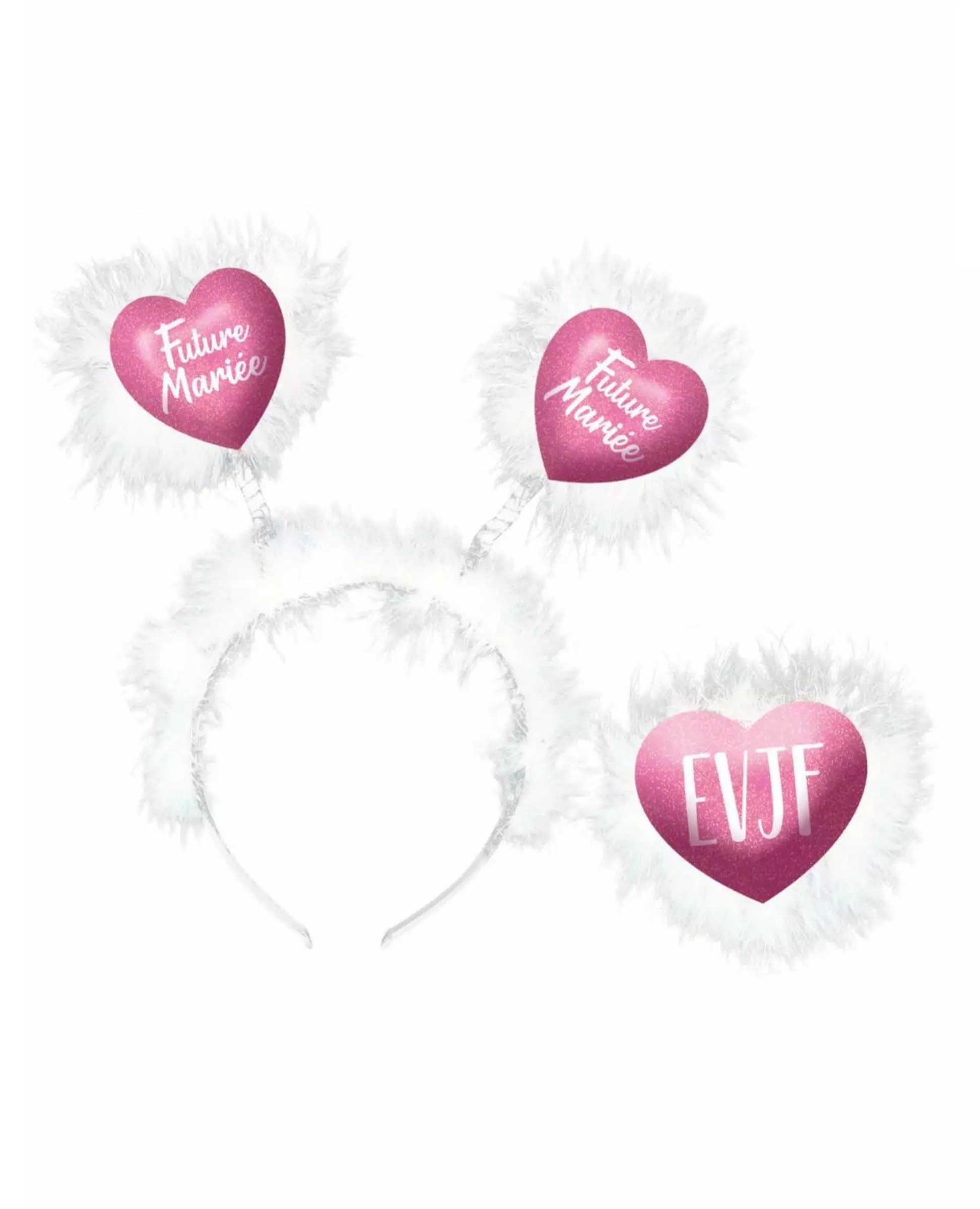 Kunngjør hvem den kommende bruden er for venner og familie! Dette brudesettet består av et pannebånd og et merke. Pannebåndet er svart med hvit pels. Det har også to antenner hvor det er festet rosa hjerter med hvit pels med inskripsjonen «Fremtidig brud!». Et rosa hjerteformet merke med hvit pels vil fullføre settet. Dette settet vil være perfekt for å kunngjøre hvem den kommende bruden er for venner og familie og feire slutten på ditt singelliv. Inkludert tilbehør: Pannebåndmerke