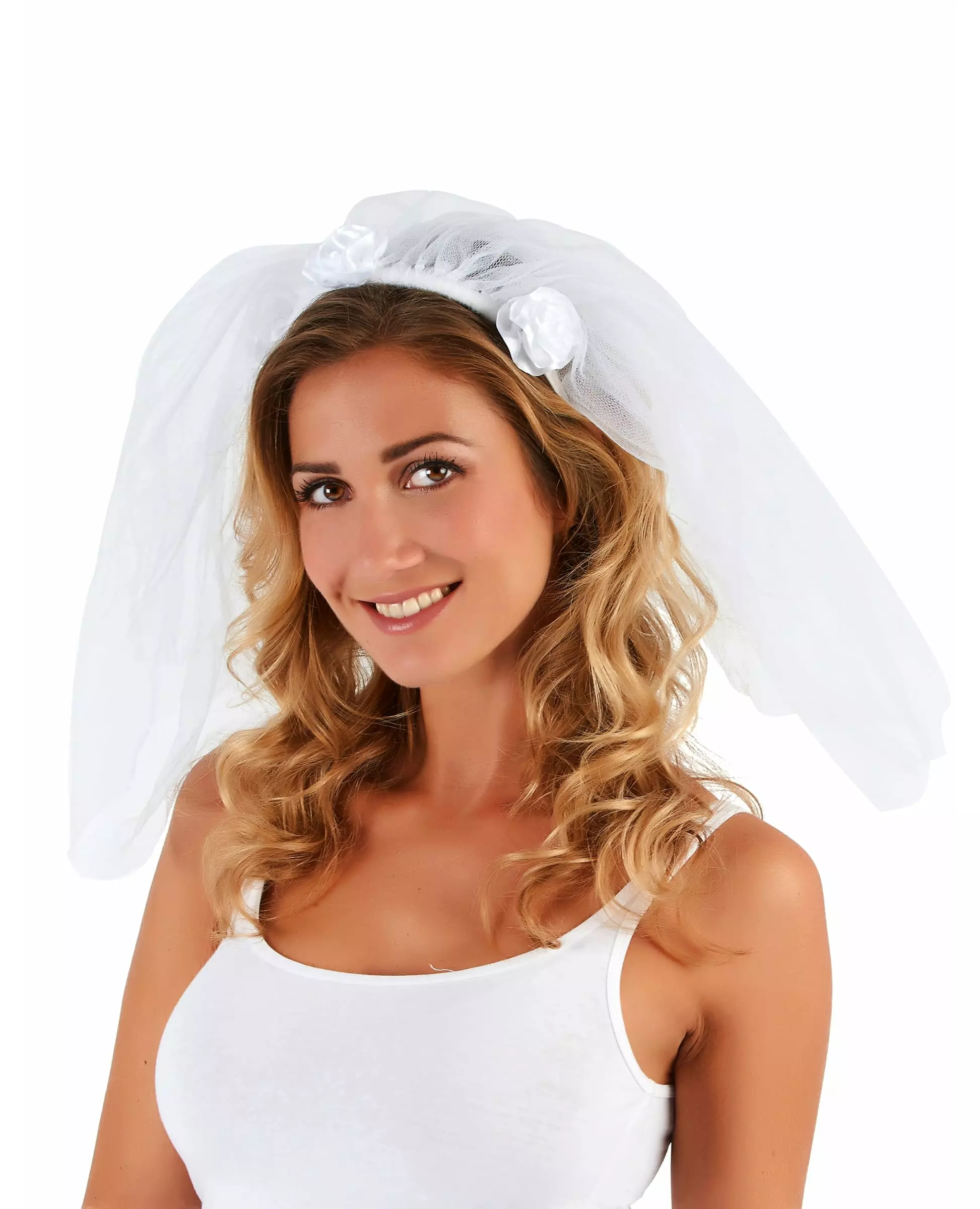 Fullfør brudekjolen din! Dette brudesløret for voksne er laget av hvitt netting. Sløret måler omtrent 55 centimeter i lengden og vil bli diskré holdt i håret med et pannebånd. Dette tilbehøret vil være ideelt for å fullføre brudekostymet ditt på utkledningsfesten eller temafesten! Inkludert tilbehør: 1 slør Materiale: 100 % polyester Vedlikehold: Håndvask
