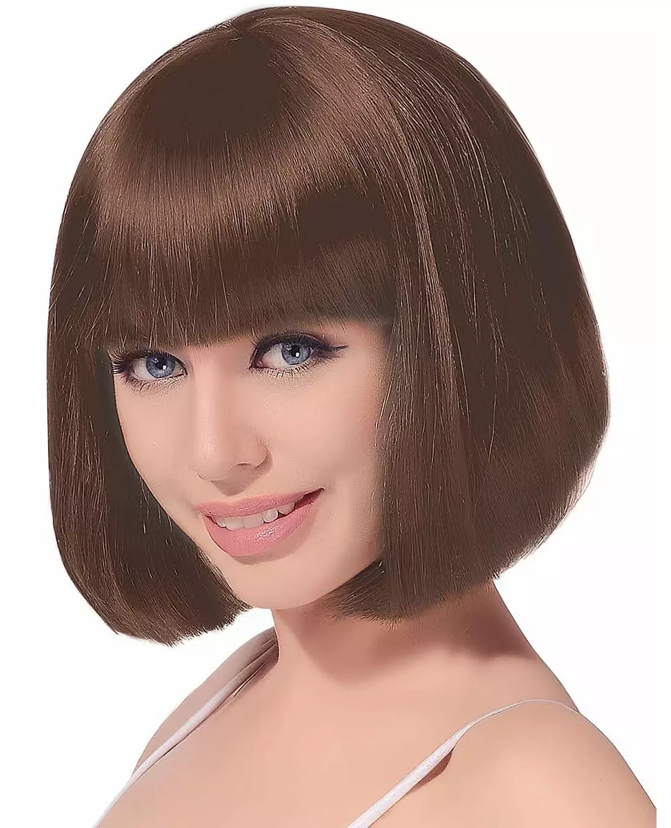 Realistisk brun farge! Denne parykken er for voksne. Laget av syntetisk hår, har en kort, asymmetrisk klipp, lengre foran. Den er brun i fargen og har rett pannen. Denne parykken er veldig realistisk og vil fullføre et elegant hippie- eller discodanserkostyme!. Inkludert tilbehør: Parykk Materiale: Syntetisk 100 % polyester 100 % polyester