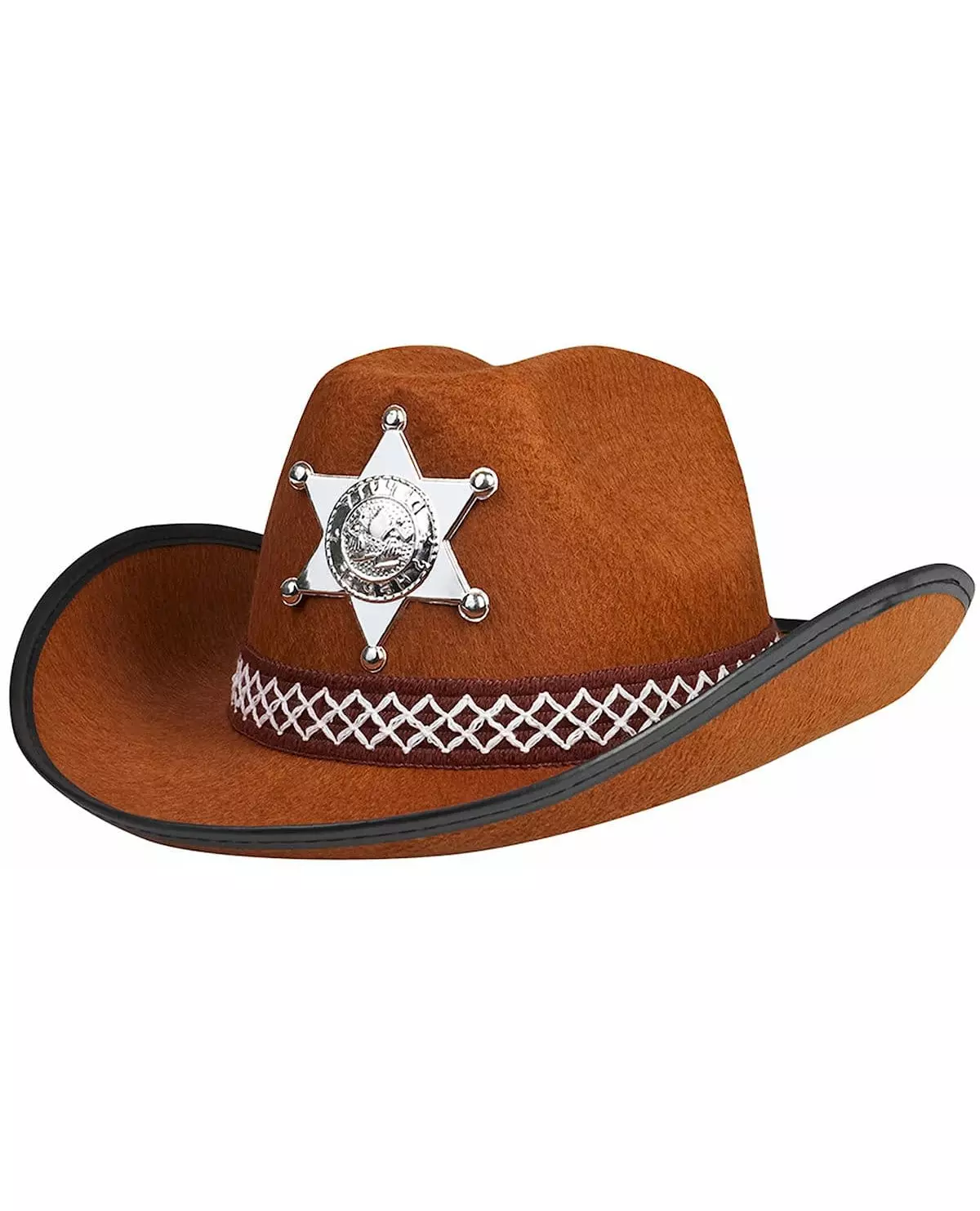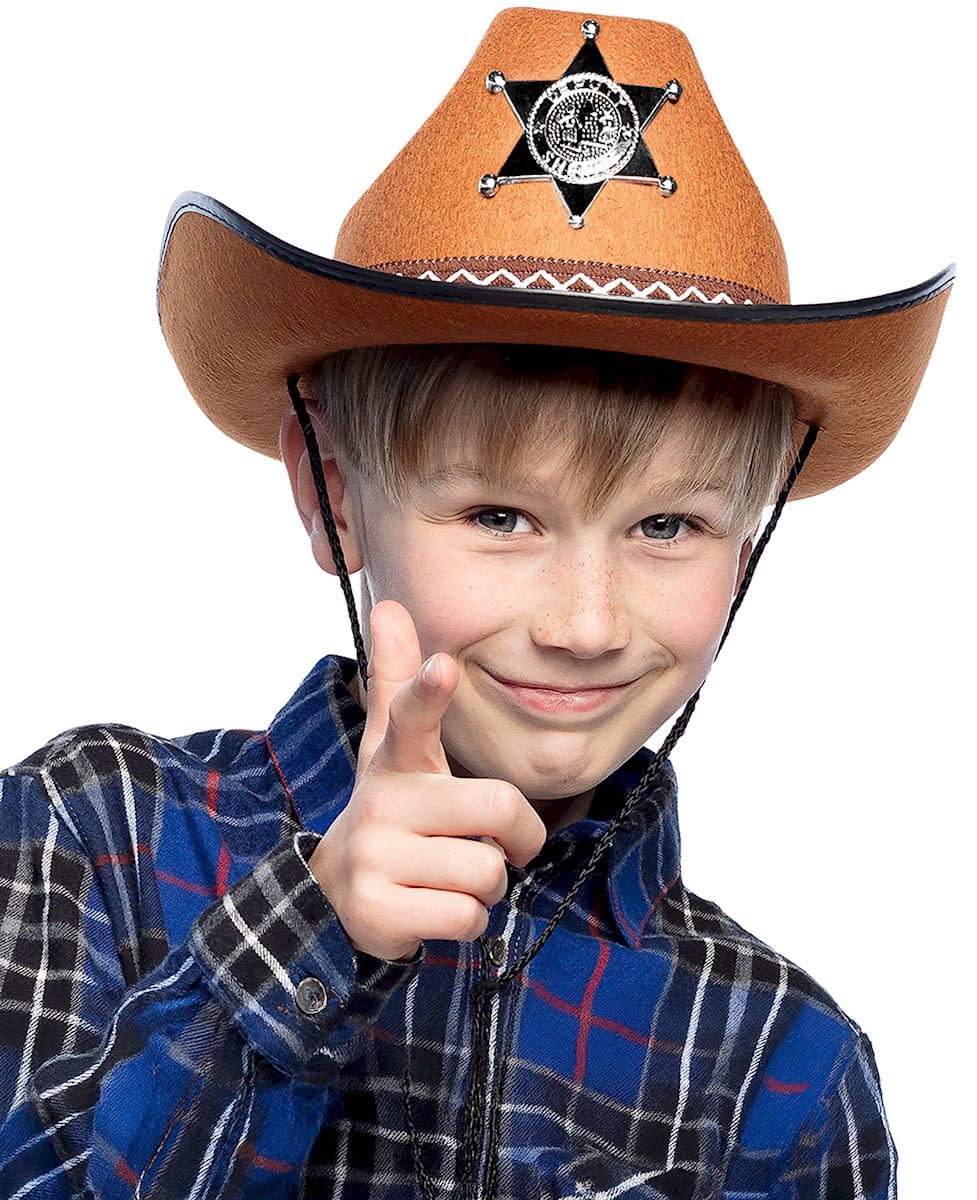Fullfør cowboykostymet til barna dine. Denne brune sheriffhatten for barn er laget av et stivt materiale. Formen, som minner om cowboyhatter, gir dette tilbehøret et veldig maskulint utseende. Sheriffstjernen er plassert på forsiden og lar deg umiddelbart identifisere karakteren du spiller. Det er en wire inni for enkel festing. Hodeplagget har en hodeomkrets på omtrent 56 cm. Denne hatten er ideell for å spille en sheriffkarakter på festlige arrangementer. Inkludert tilbehør: Hatt