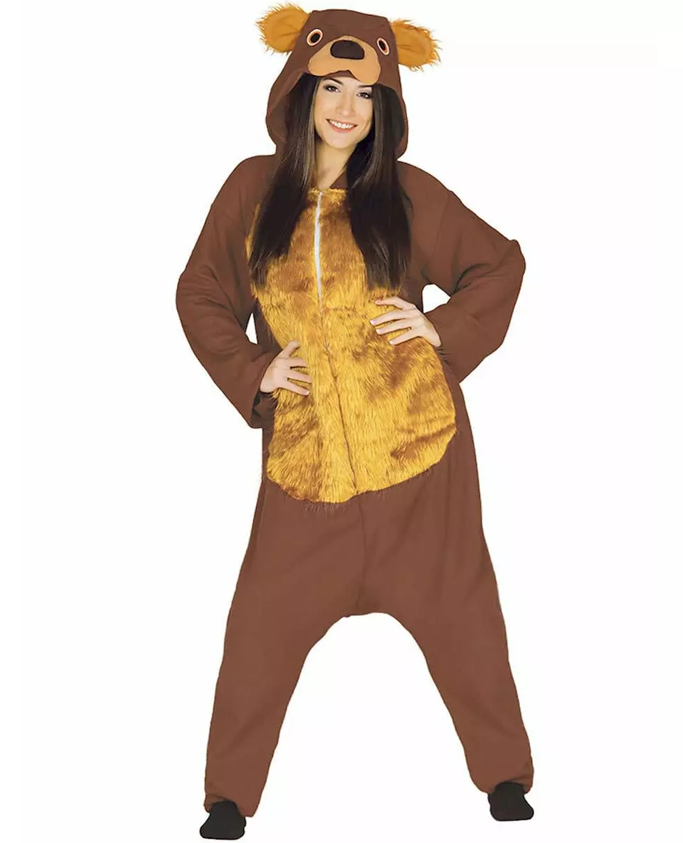 En skikkelig søt teddybjørn! Dette brune bjørnekostymet er for voksne. Det består av en jumpsuit som lukkes med glidelås foran. Den forestiller en bjørn med en lodden mage, laget av plysjstoff. Denne brune jumpsuiten har en hette som forestiller et bjørneansikt med plysjører. Dette bjørnekostymet vil være perfekt for karneval eller en fest med dyretema. Inkludert tilbehør: Jumpsuit med hette Materiale: 100 % polyester Vedlikehold: Håndvask