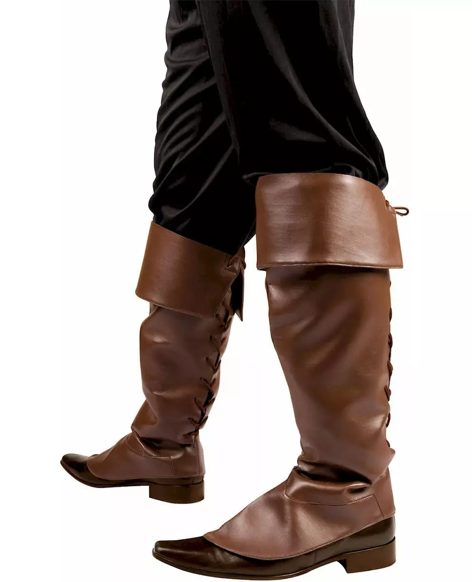 Læreffekt! Dette paret med overtrekkstøvler for voksne er laget av tykt brunt imitert skinnstoff (sko og bukser er ikke inkludert). Det er snøring bak for en veldig realistisk effekt. Dette tilbehøret er ideelt for å fullføre piratkostymet ditt på en utkledningsfest eller temafest. Målene på overtrekkstøvlene er 42 cm for toppen og 48 cm for midten. Inkludert tilbehør: Par overtrekkstøvler