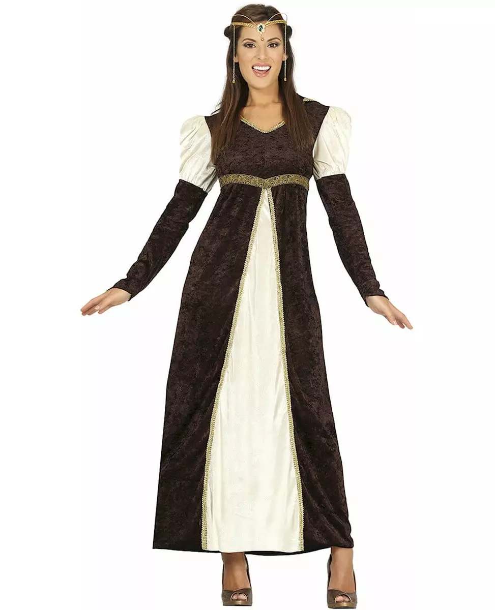 Venter du på Prins Charming? Dette middelalderprinsessekostymet består av en kjole som går ned til anklene. Kjolen er hovedsakelig laget av et brunt fløyelsstoff. De lange ermene er puffede på skuldrene og laget av et beige stoff som gjentas på forsiden av skjørtet. Gulldetaljer fullfører dekorasjonen til denne overdådige prinsessekjolen (krone ikke inkludert). Gjenopplev middelalderen ved å ta på deg dette prinsessekostymet til et middelalderarrangement eller en utkledningsfest. Inkludert tilbehør: Kjole Materiale: 100 % polyester Vedlikehold: Håndvask