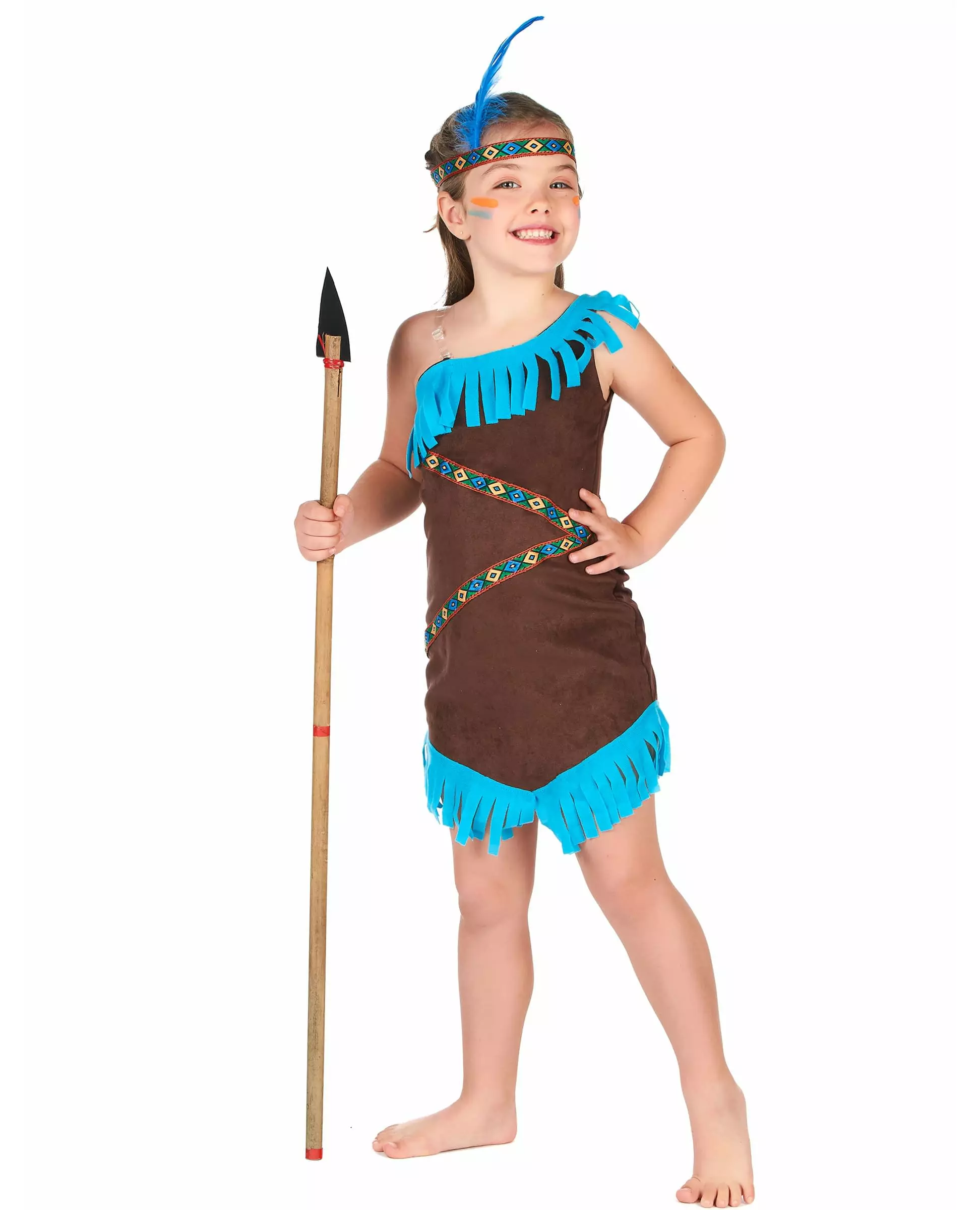 Lille apache! Dette indianerkostymet for jenter består av en kjole og et pannebånd. Den brune kjolen har en asymmetrisk krage. Den er dekorert med blå frynser på toppen og bunnen. Etniske kanter pryder forsiden av kjolen. Pannebåndet er toppet med en blå fjær. Dette lille indianerkostymet vil være perfekt for karneval eller en fest med western-tema. Inkludert tilbehør: Pannebånd til kjolen Materiale: Polyester Stell: Håndvask Målinformasjon: western, indiansk