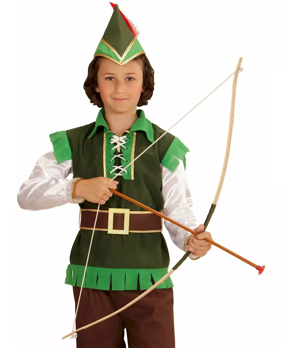 Sikt godt! Dette bueskyttersettet inneholder en bue med kogger og tre piler. Den lyse treeffektbuen er omtrent 103 cm lang og er dekket av khakigrønt stoff i midten for bedre grep. Koggeret er laget av brunt stoff og har en stropp for å holde det på skulderen. De tre plastpilene har en rød sugekopp på enden for sikker skyting. Dette settet vil være ideelt for å fullføre bueskytterkostymet ditt på karneval eller en utkledningsfest! ©copy; Widmann SRL. Inkludert tilbehør: Buekogger 3 piler