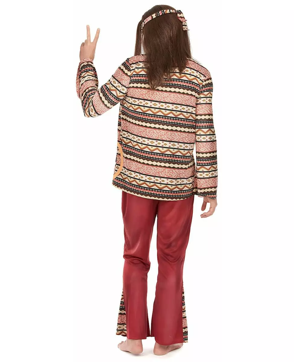 Burgunder hippiekostyme for menn