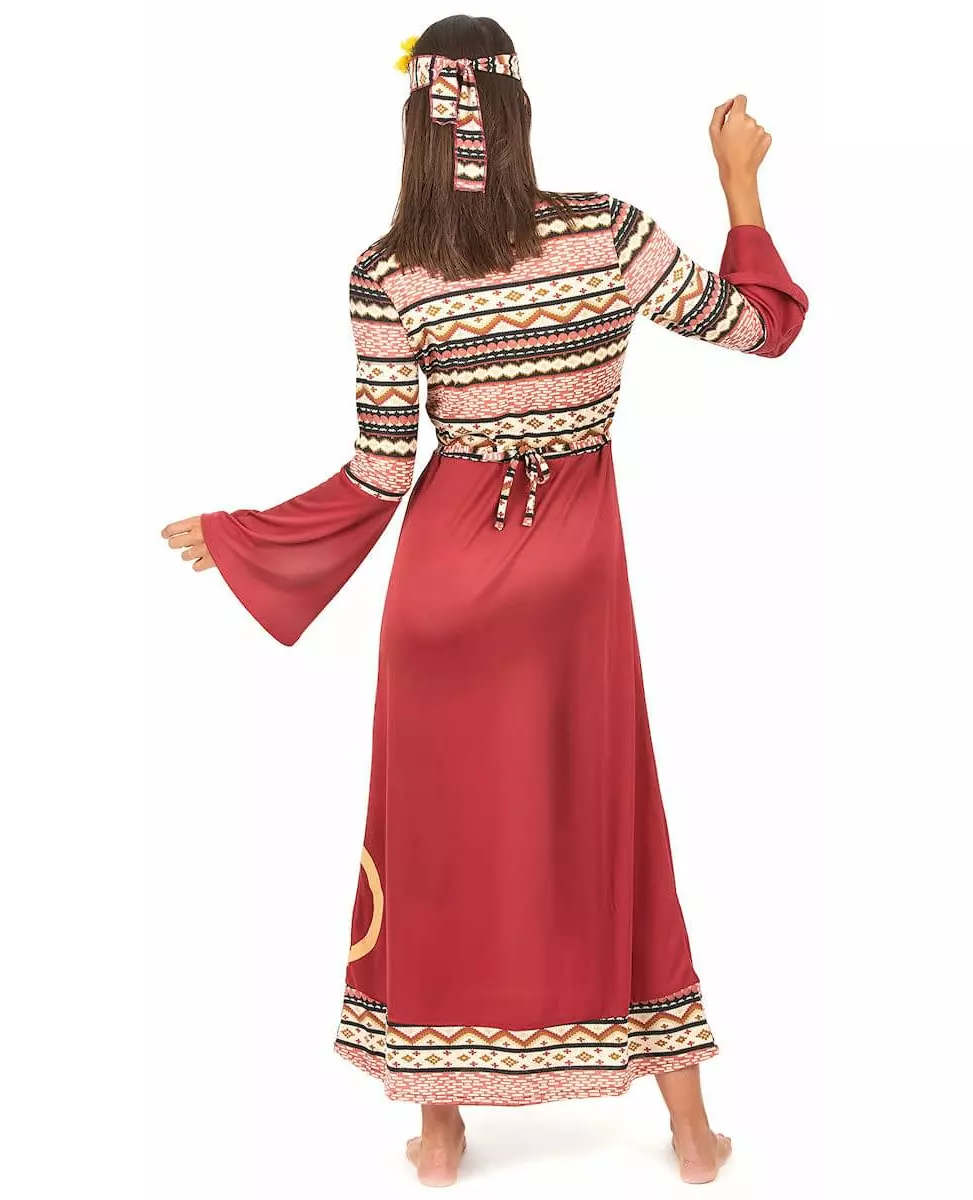 Gå tilbake til 70-tallet med dette kostymet! Dette hippiekostymet for kvinner består av en kjole og et pannebånd. Den lange kjolen er burgunderfarget. Den har lange, utsvingte ermer og en V-hals. Toppen er fargerik, og «fred og kjærlighet»-tegnet er trykt på undersiden av plagget. To stropper bak lar deg stramme kjolen i livet, og det elastiske stoffet vil tilpasse seg perfekt til kroppsfasongen din. Til slutt vil et matchende pannebånd sette prikken over i-en til antrekket. Dette hippiekostymet vil være perfekt for å gå tilbake til årgangen under retro-kostymefester. Inkludert tilbehør: Kjolepannebånd Materiale: 100 % polyester Pleie: Håndvask
