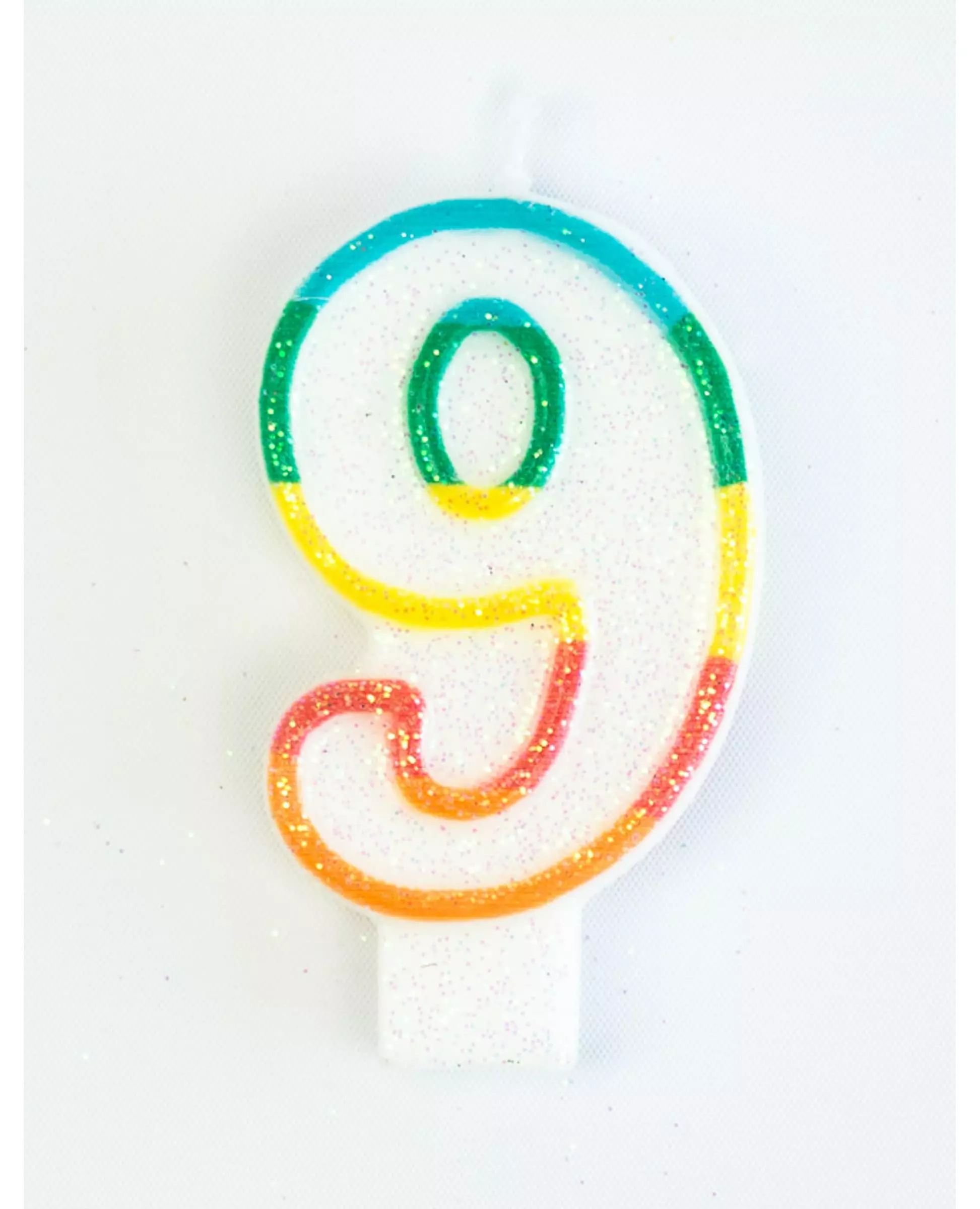 Bursdagslys med nummer 9, 7,5 cm. Et milepælsår. Dette bursdagslyset med nummer 9 måler omtrent 7,5 cm.