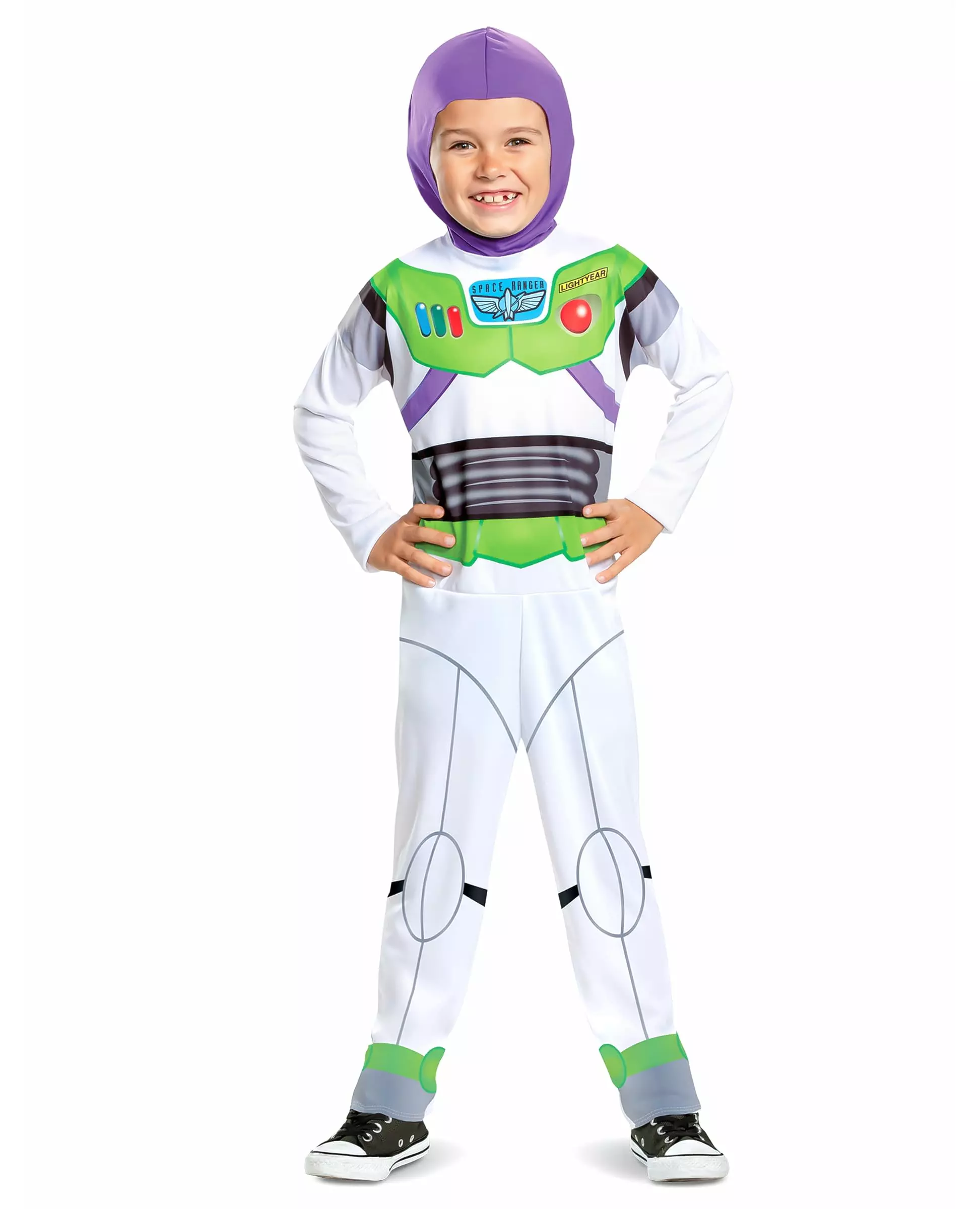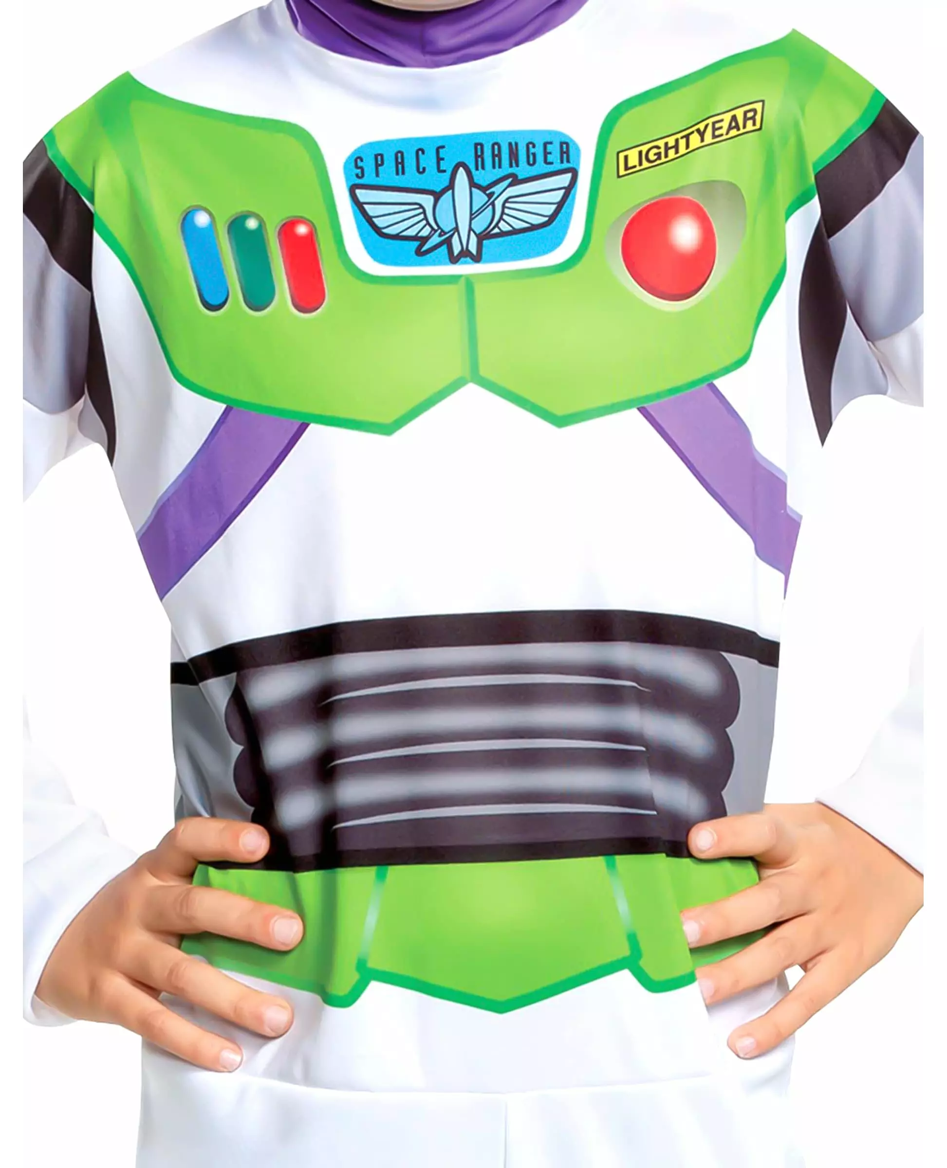 Til uendelig og forbi! Dette Buzz Lightyear™-kostymet er for barn og består av en jumpsuit og et hodeplagg. Jumpsuiten er offisielt lisensiert av Toy Story™, er hvit og har uniformen til den berømte figuren Buzz Lightyear™ trykt. Den har trykk av de forskjellige knappene til leken på brystet. Det lilla hodeplagg fullfører kostymet. Det dekker hodet som en balaklava. Barnet ditt vil bli glad for å legemliggjøre sin tegneserieheltfavoritt med dette Buzz Lightyear™-kostymet til karneval! Inkludert tilbehør: Jumpsuit-hodeplagg Materiale: 100 % polyester Vedlikehold: Håndvask