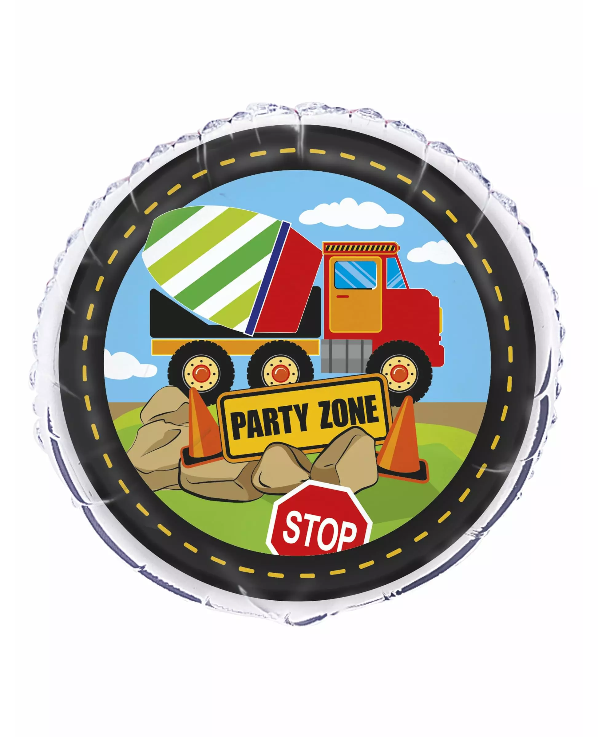 Oppmerksomhet, festsone! Denne ballongen måler omtrent 45 cm i diameter. Den er laget av aluminium og har et veimotiv på kanten. I midten er det en anleggsbil, et stoppskilt og kjegler med påskriften «Festsone». Denne ballongen vil være ideell for å fullføre en bursdagsdekorasjon med byggeplasstema! Inkludert tilbehør: 1 ballong Materiale: Aluminium