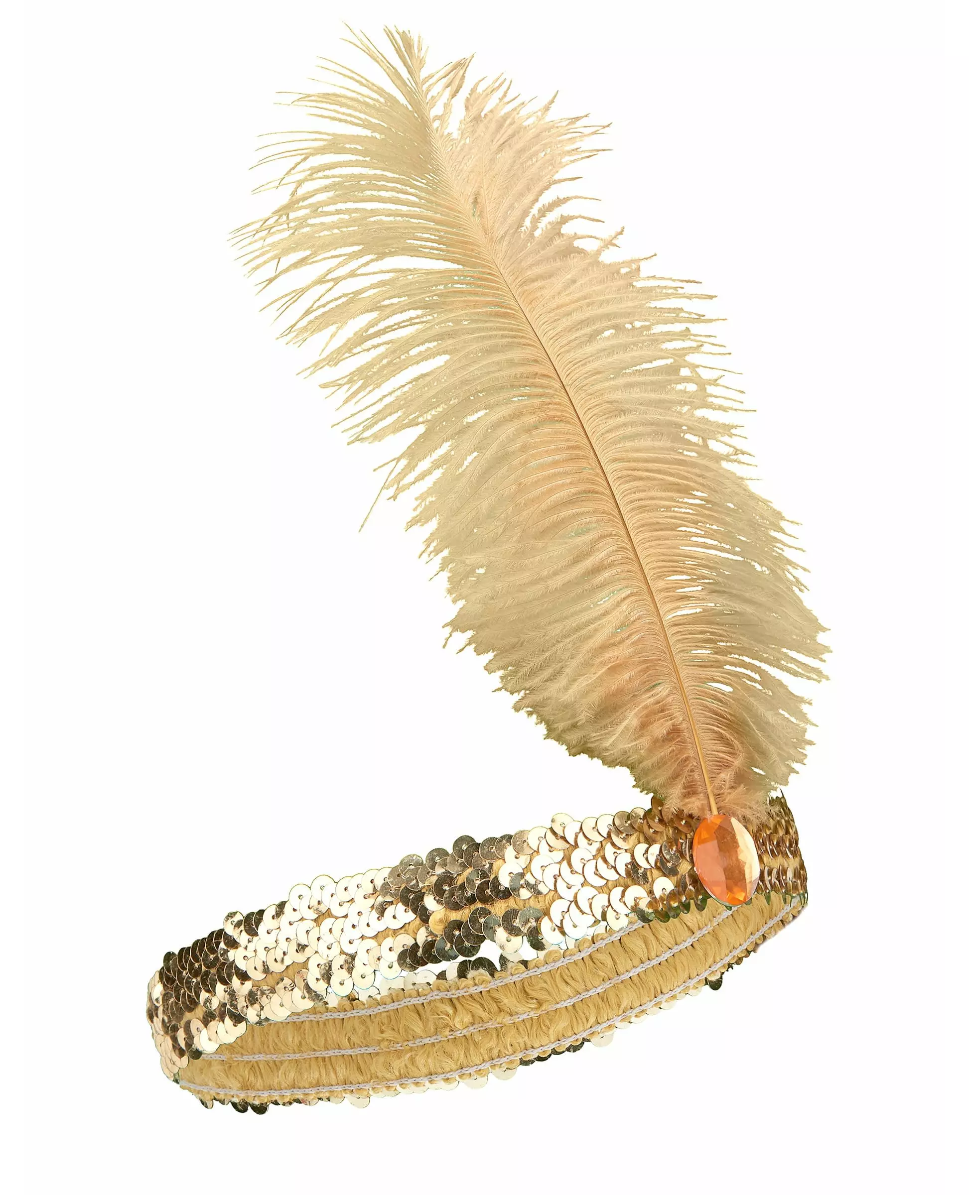 Charleston-pannebånd til dame med paljetter og gullfjær