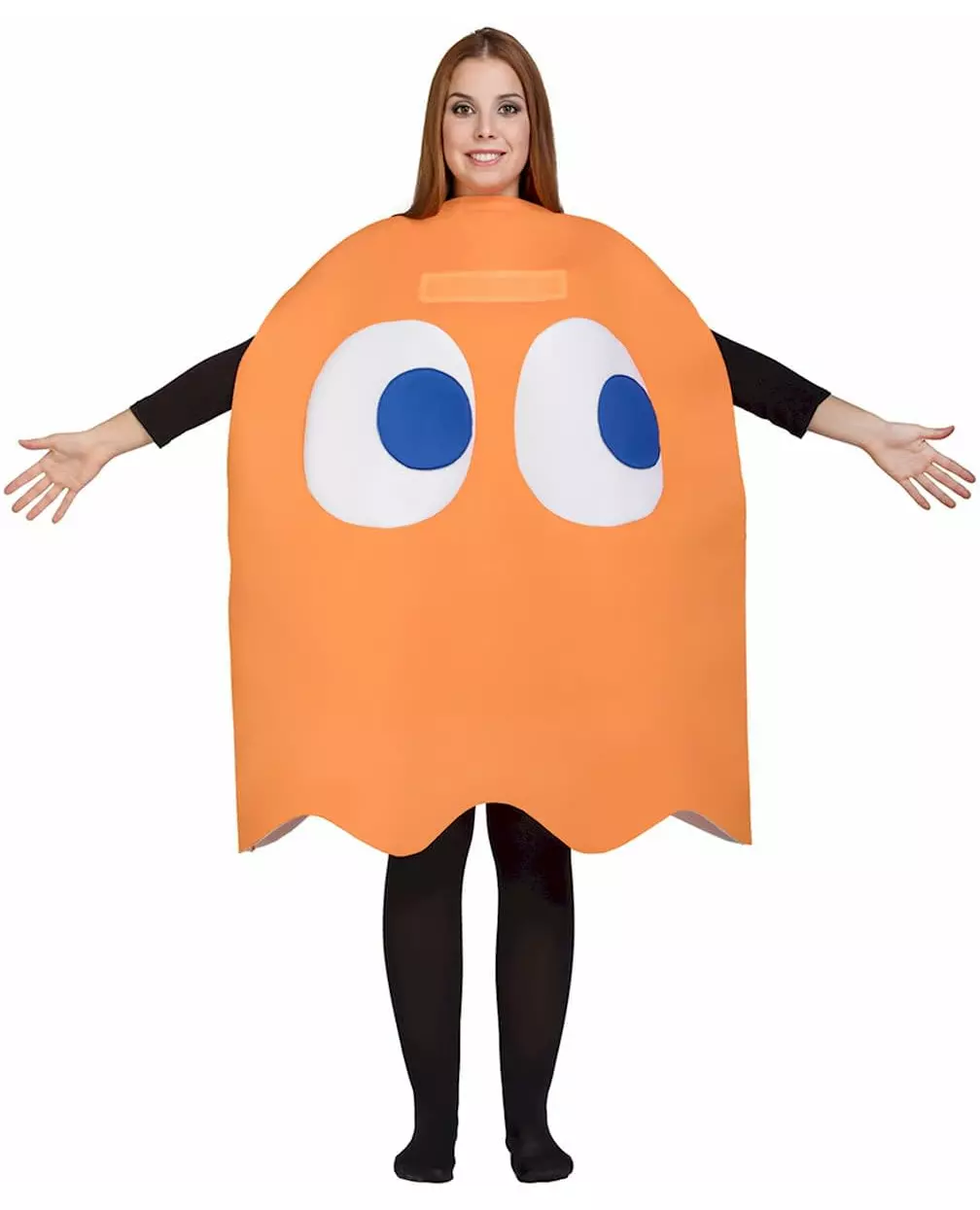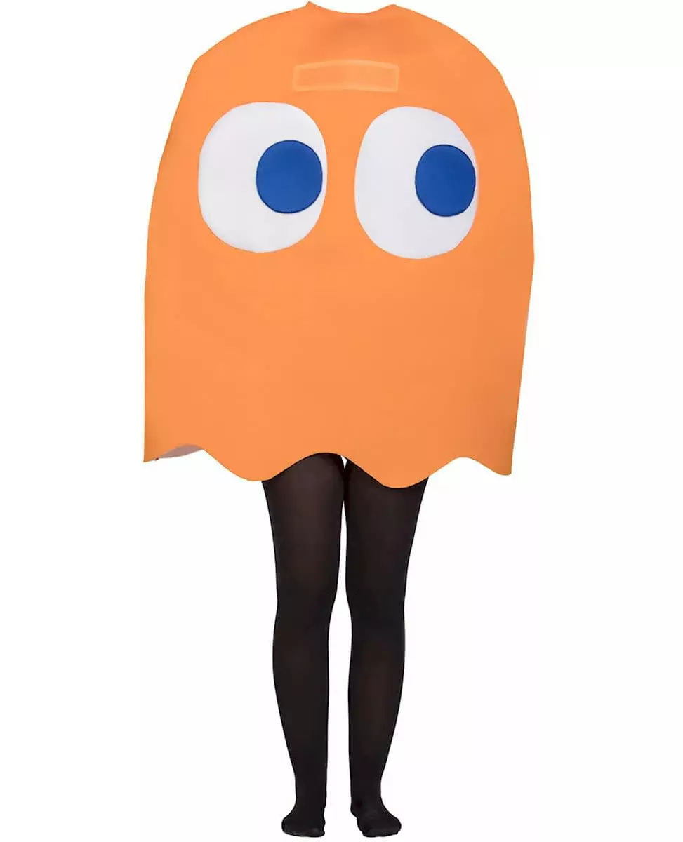 Bli spøkelset fra Pac-Man™ Dette Pac-Man™ Clyde Ghost-kostymet for voksne forvandler deg til en av de berømte fiendene fra arkadespillet. Den oransje tunikaen tilbyr to måter å bruke den på: med hodet inni kostymet, hvor du kan se tydelig gjennom en liten, diskret åpning, eller utenpå for mer komfort. Dette Pac-Man Ghost-kostymet passer for personer mellom 160 og 190 cm, og er ideelt for temafester, karneval, Halloween eller retro-arrangementer. Inkludert tilbehør: 1 tunika Materiale: 100 % polyester Stell: Håndvask