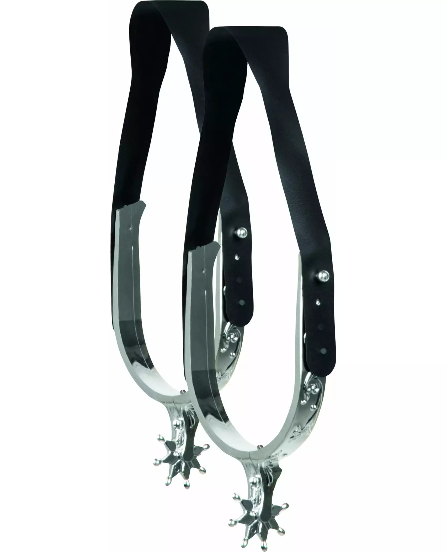 Dra og erobre Vesten! Disse cowboysporene er laget av sølvfarget plast. De måler omtrent 7 cm i bredden og holdes på føttene dine med en liten justerbar plaststropp. Disse sporene vil være perfekte for å sette prikken over i-en på cowboykostymet ditt og legge ut på å erobre det amerikanske vesten. Inkludert tilbehør: Sporer