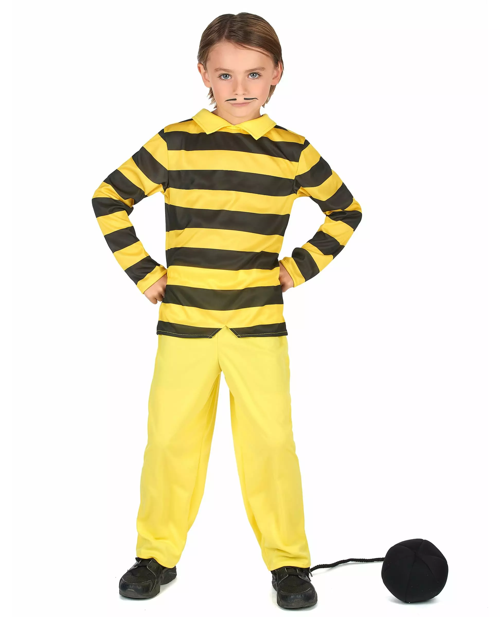 Når spiser vi? Dette Dalton-kostymet for barn er offisielt lisensiert av Lucky Luke. Det består av en topp, bukser og en ball med kjede. Toppen, med lange ermer, er gul- og svartstripete med en helgul krage. Buksene er rettskårne og også helt gule. Og for å gjøre dette kostymet enda mer realistisk, er en fangeball med kjede som festes rundt ankelen inkludert! Dette kostymet vil være perfekt for å spille en av de berømte Dalton-brødrene på neste karneval. Inkludert tilbehør: Topp, ballerinabukser Materiale: Polyester Stell: Håndvask