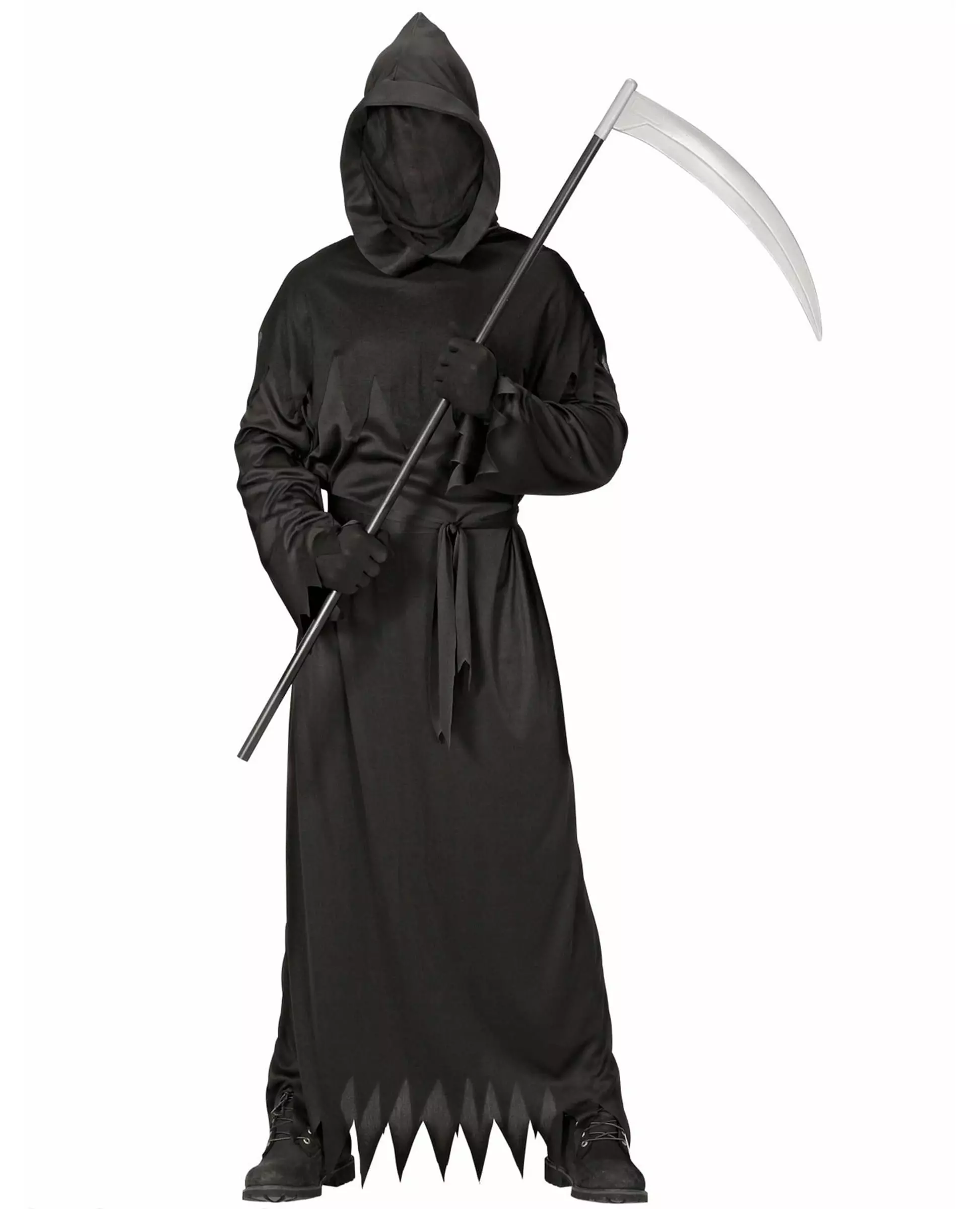 Døden er ikke langt unna! Dette dødskostymet er for menn, det består av en tunika med hette, en maske som skjuler ansiktet og et belte. (Ljå og hansker er ikke inkludert) Tunikaen med hette er svart med lange ermer, nederst og på ermene er tunikaen kuttet i spisser. En svart stoffmaske dekker ansiktet. Et svart belte strammes inn i midjen. Dette dødskostymet vil være ideelt for en Halloween-fest. Inkludert tilbehør: Tunika med hette Maske som skjuler ansiktet Belte Materiale: 100 % polyester Vedlikehold: Håndvask