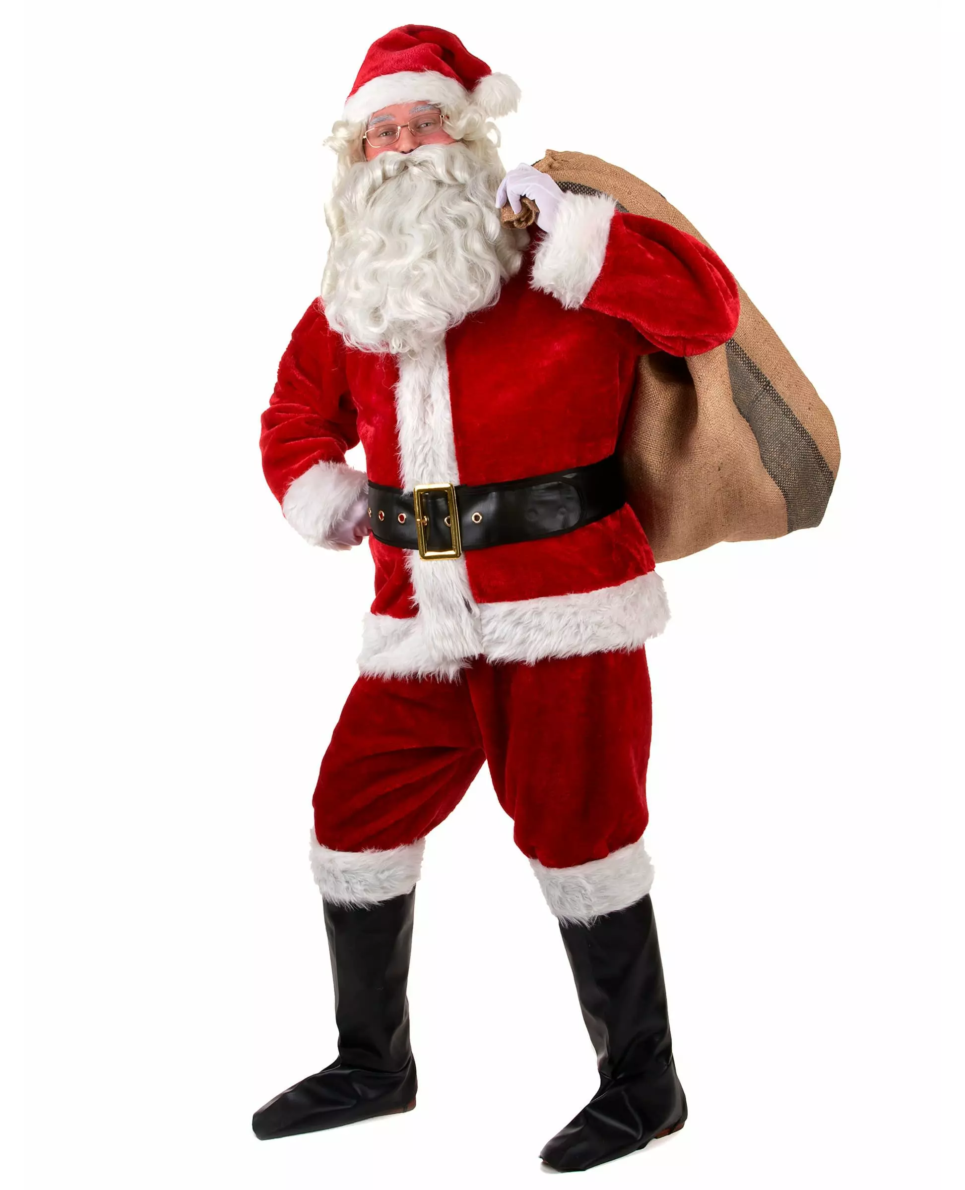 Luksus julenisse! Dette luksuriøse julenissekostymet er for voksne og inkluderer en jakke, bukse, en lue, et skjegg, et belte, et par hansker, et par briller og et par støveltrekk. Jakken, luen og buksene er laget av tykt, mykt rødt og hvitt fløyelsstoff. Jakken lukkes foran med borrelås, buksene har en strikk i midjen, og luen er litt løs. Belte- og støveltrekkene er laget av svart kunstskinn. Beltet lukkes med en metallspenne, og støveltrekkene er dekorert med pels på toppen. Hanskene er korte og hvite, og brillene (uten linser) er laget av metall og kobberfarget. Skjegget er laget av skinnende hvitt krøllete hår. Det vil bli holdt til ansiktet ditt av en strikk (mindre skjegg enn på produktbildet). Her er et veldig realistisk kostyme som vil sikre at du blir en skikkelig suksess på julaften! Inkludert tilbehør: Hatt Briller Skjegg Jakke Bukser Belte Støvletter Hansker Materiale: Polyester og syntetisk Pleie: Håndvaskbar Målinformasjon: For størrelse L, jakke 61 cm bred mellom skuldrene, 74 cm i midjen og 78 cm total lengde. Bukser ca. 82 cm lange. For størrelse XL måler jakken ca. 78 cm i lengden og buksene måler ca. 85 cm i lengden. For størrelse XXL måler jakken ca. 79 cm i lengden og buksene måler ca. 89 cm i lengden.