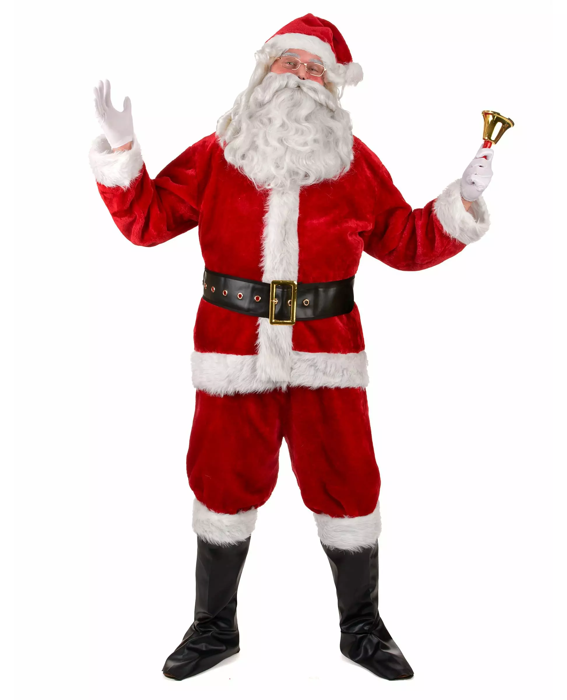 Luksus julenisse! Dette luksuriøse julenissekostymet er for voksne og inkluderer en jakke, bukse, en lue, et skjegg, et belte, et par hansker, et par briller og et par støveltrekk. Jakken, luen og buksene er laget av tykt, mykt rødt og hvitt fløyelsstoff. Jakken lukkes foran med borrelås, buksene har en strikk i midjen, og luen er litt løs. Belte- og støveltrekkene er laget av svart kunstskinn. Beltet lukkes med en metallspenne, og støveltrekkene er dekorert med pels på toppen. Hanskene er korte og hvite, og brillene (uten linser) er laget av metall og kobberfarget. Skjegget er laget av skinnende hvitt krøllete hår. Det vil bli holdt til ansiktet ditt av en strikk (mindre skjegg enn på produktbildet). Her er et veldig realistisk kostyme som vil sikre at du blir en skikkelig suksess på julaften! Inkludert tilbehør: Hatt Briller Skjegg Jakke Bukser Belte Støvletter Hansker Materiale: Polyester og syntetisk Pleie: Håndvaskbar Målinformasjon: For størrelse L, jakke 61 cm bred mellom skuldrene, 74 cm i midjen og 78 cm total lengde. Bukser ca. 82 cm lange. For størrelse XL måler jakken ca. 78 cm i lengden og buksene måler ca. 85 cm i lengden. For størrelse XXL måler jakken ca. 79 cm i lengden og buksene måler ca. 89 cm i lengden.