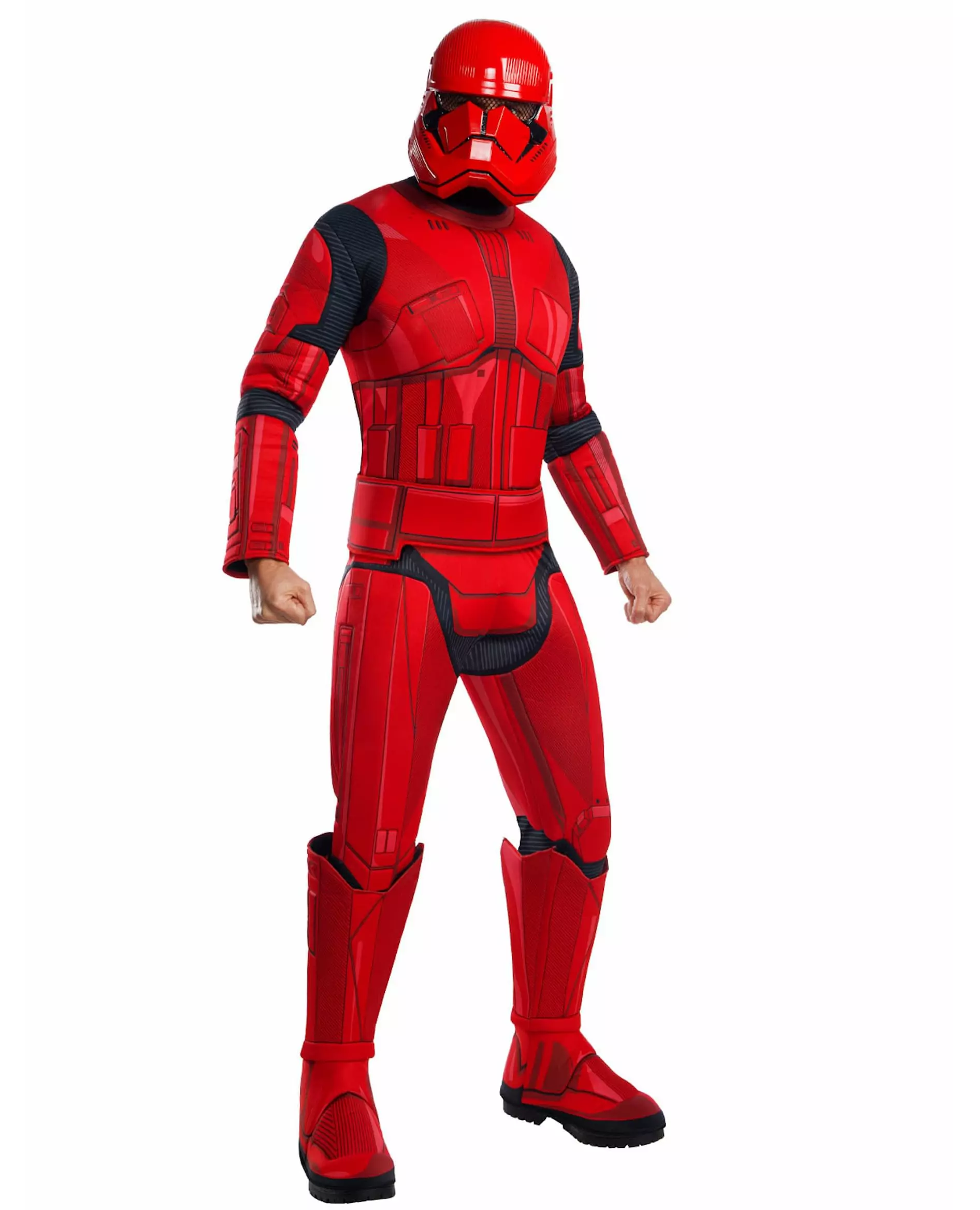 Et ekte soldatkostyme! Dette luksuriøse kostymet er offisielt lisensiert av Star Wars. Det er for voksne og består av en jumpsuit, et par støveltrekk og en halvmaske. Jumpsuiten er rød og svart. Den representerer rustningen til de evige Sith-soldatene. Denne langermede jumpsuiten er polstret på armer, overkropp og ben. Den er dekorert med et rødt belte polstret med fint skum og lukkes med en borrelåsfest bak. 3D-støveltrekk er inkludert som en forlengelse av jumpsuiten for en enda mer realistisk effekt. De sitter enkelt på ved hjelp av en strikk som du må føre under føttene. Til slutt finner du en PVC-halvmaske som vil fullføre antrekket perfekt. Til ditt neste Star Wars™-temakostymefest, spill som en Sith-soldat for å vende alles øyne mot ditt sublime kostyme! Inkludert tilbehør: Jumpsuit med støveltrekk Halvmaske Materiale: PVC