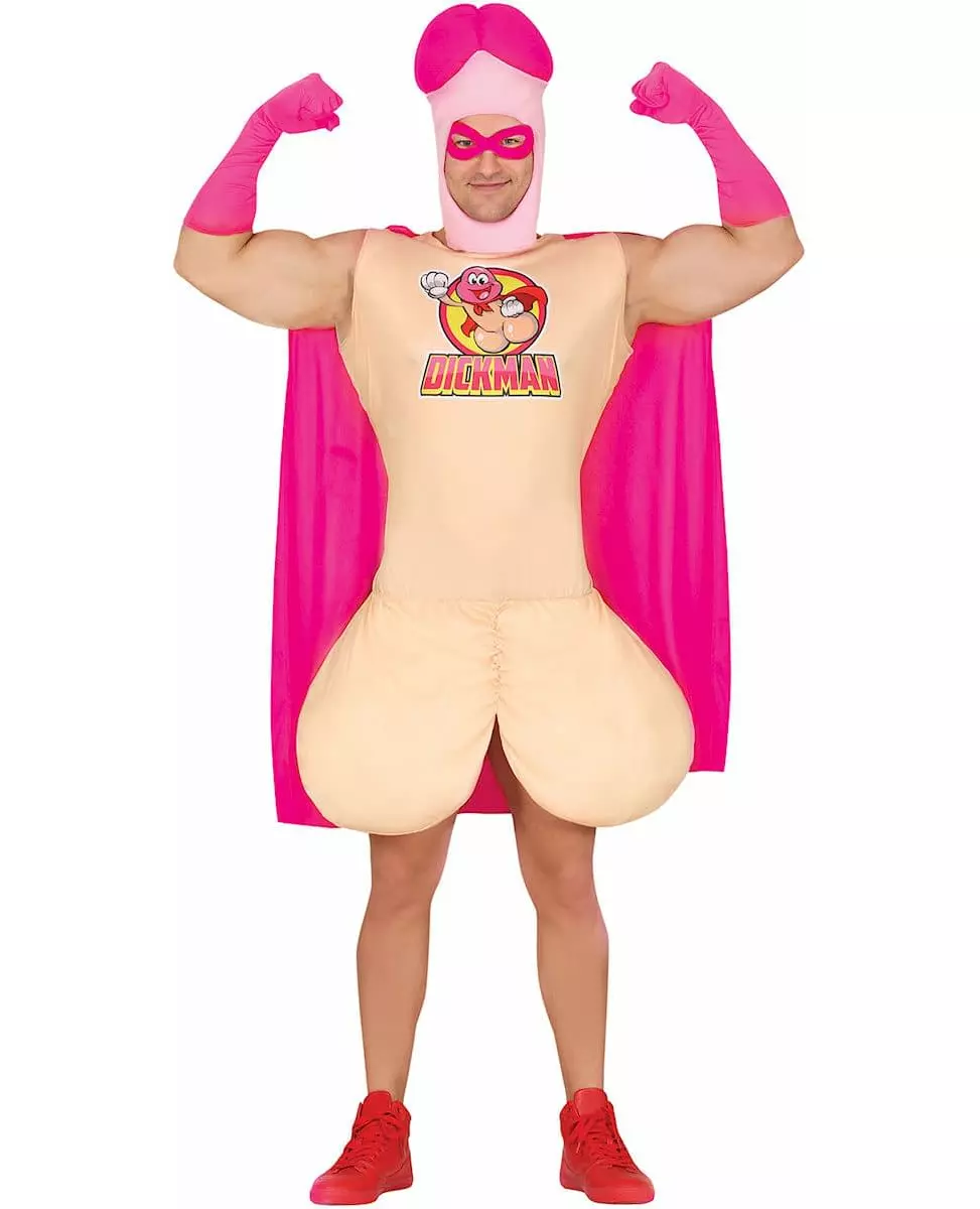 Den frekkeste helten! Dette Dickman-kostymet for voksne inkluderer en original tunika, en rosa kappe, et matchende hodeplagg og en maske for å fullføre dette helt vanvittige antrekket. Med sitt humoristiske design og sin særegne logo lover dette antrekket å bli en hit på festene dine. Den løse tunikaen sikrer optimal komfort, mens den flagrende kappen gir et dynamisk preg til denne superhelten uten like. Ideelt for et kostymefest, et utdrikningslag eller ethvert arrangement der humor er påkrevd! Inkludert tilbehør: 1 tunika 1 kappe 1 hodeplagg 1 maske Materiale: 100 % polyester Vedlikehold: Håndvask