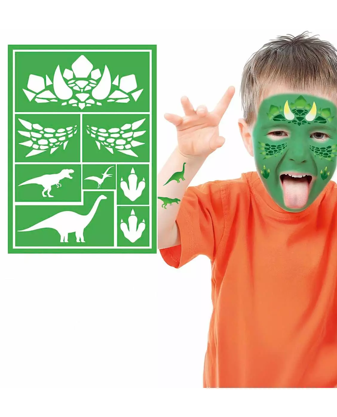 Forhistorisk sminke på et øyeblikk! Med denne sminkesjablongen kan barnet ditt raskt forvandles til en dinosaur. Den er designet for ren og detaljert påføring, og lar deg enkelt reprodusere dinosaurskjell, fotavtrykk og silhuetter for en imponerende effekt. Denne gjenbrukbare sjablongen er perfekt for en temabursdagsfest, kostymefest eller karneval, og sikrer rask og morsom sminke. Kombiner den med livlige farger for et enda mer spektakulært resultat! Ingredienser: Plast. Inkludert tilbehør: 1 sjablongark Materiale: Plast