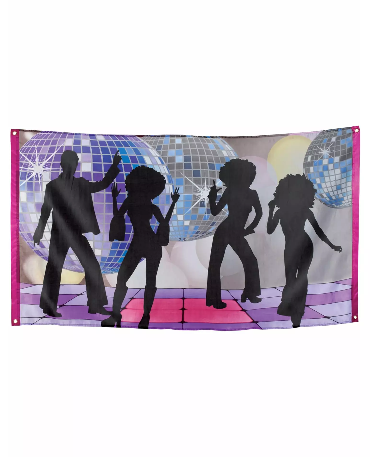 90 cm x 150 cm! Dette diskobanneret måler omtrent 90 cm x 150 cm. Denne veggdekorasjonen vil være ideell for å dekorere rommet ditt under en kostyme- eller temafest. Inkludert tilbehør: Banner