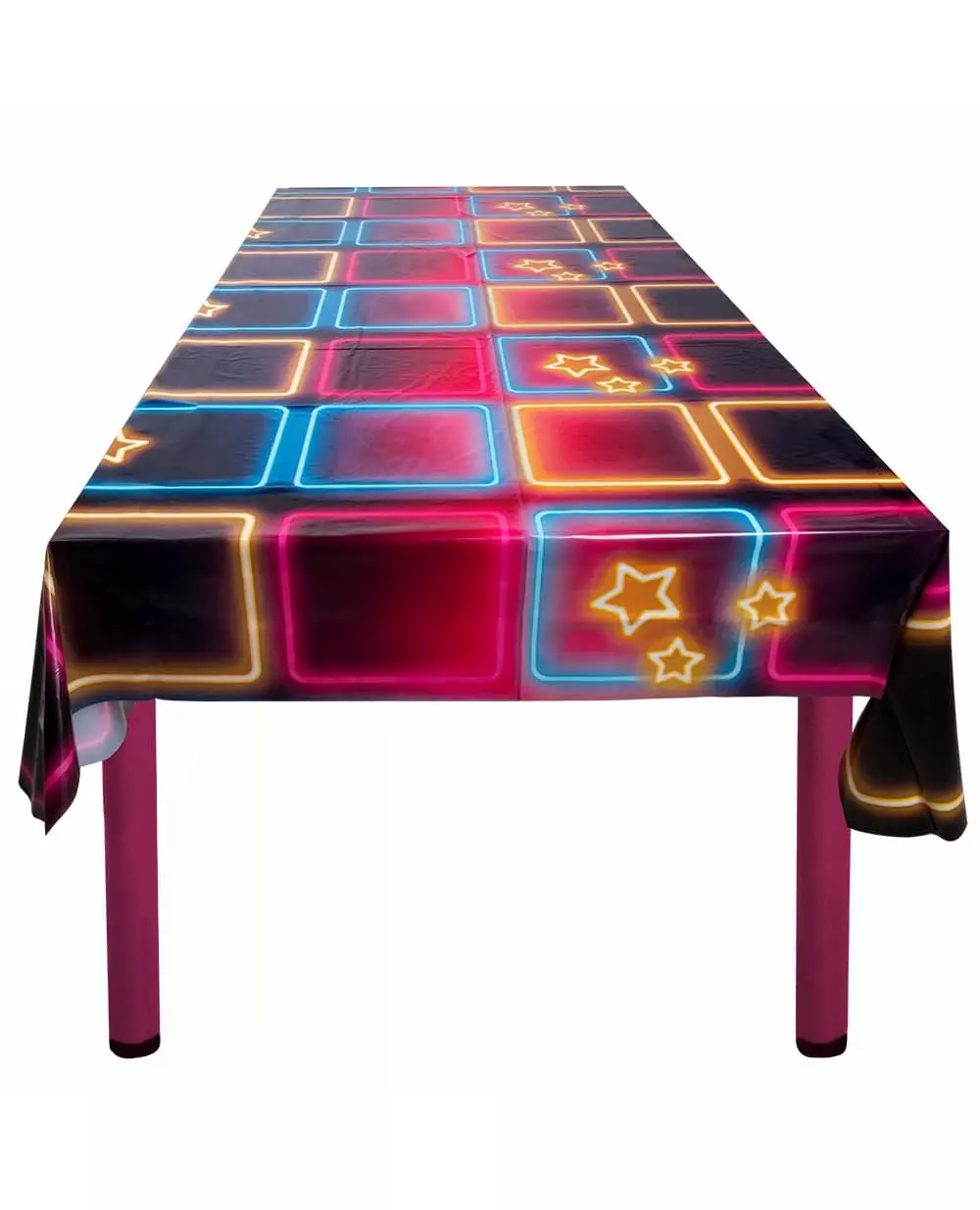 Pynt opp duken din for en vill discofest! Denne duken er laget av plast og måler omtrent 180 x 130 cm. Den har fargerike firkanter ledsaget av stjerner som representerer et dansegulv. Sett stemningen for en discofest med denne duken! Inkludert tilbehør: 1 duk Materiale: Plast