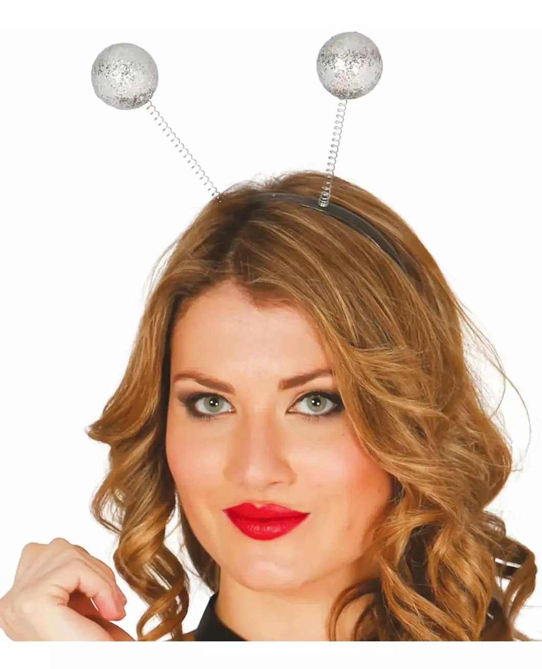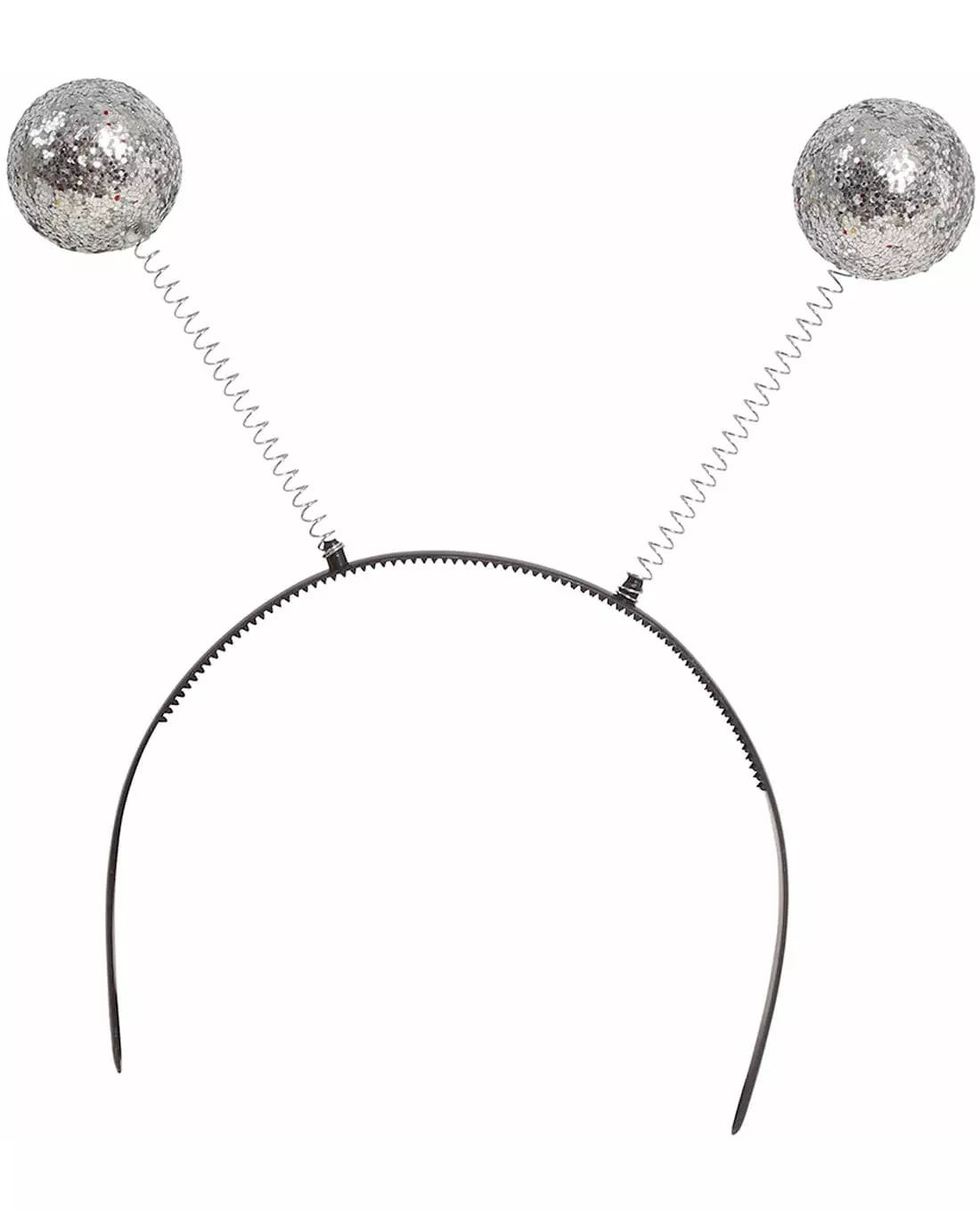 Disco! Dette pannebåndet har to discokuler festet til fjærer. Det er tilgjengelig i 3 farger. Det vil være ideelt for å fullføre antrekket ditt på et disco-tema kostymearrangement. Inkludert tilbehør: Et pannebånd