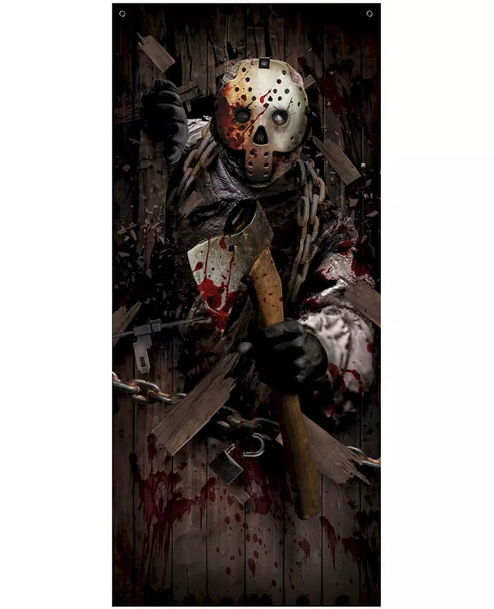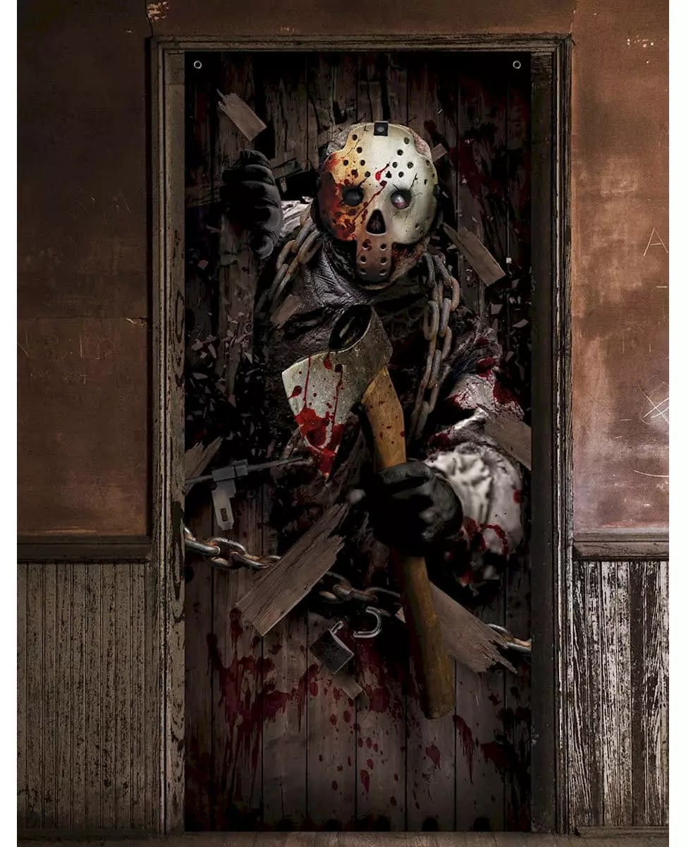 Forvandle inngangspartiet ditt til en skrekkscene med denne dørdekorasjonen i form av en øksemorder! Denne dørdekorasjonen måler omtrent 80 x 180 cm og forestiller en øksemorder. Dekorasjonen er svært detaljert og får det til å se ut som om en øksemorder har brutt opp døren. Du kan enkelt bruke den på alle standard dører. Skrekk gjestene dine med denne dørdekorasjonen i form av en snikmorder og organiser en uforglemmelig Halloween-fest! Inkludert tilbehør: 1 dørdekorasjon