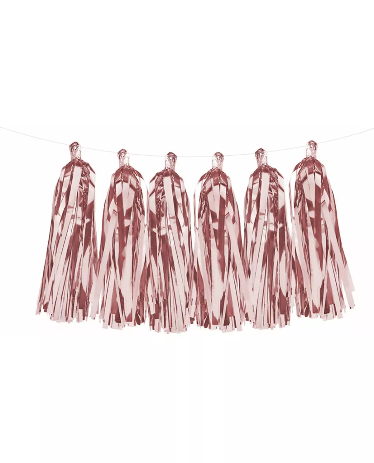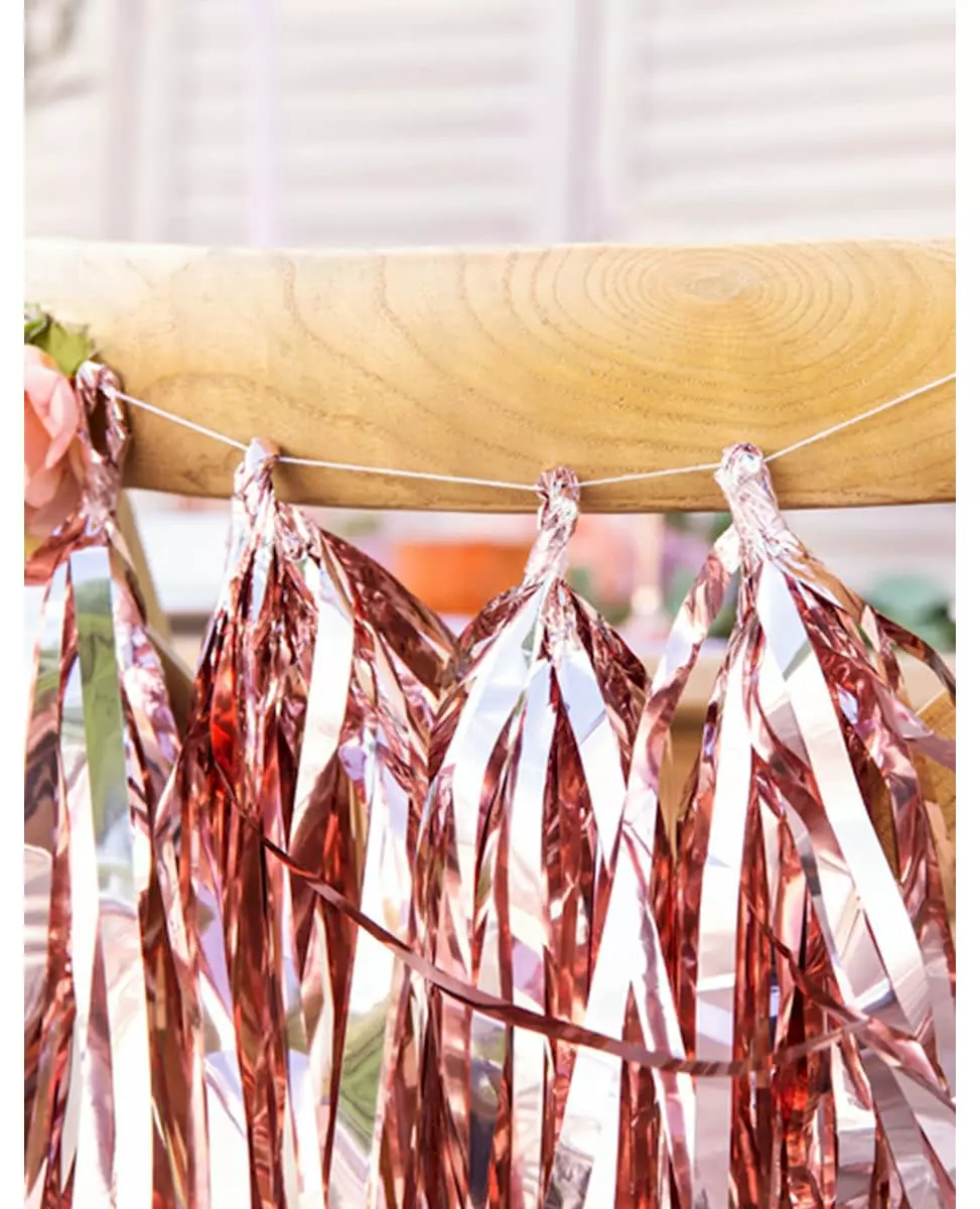 En girlander som vil pynte opp festen din! Denne duskgirlanderen er i metallisk roségullfarge. Den består av 12 pomponger laget av flammehemmende materiale og et bånd som er omtrent 1,5 m langt. Bare tre pompongene på det medfølgende båndet for å lage denne flotte girlanderen. Denne duskgirlanderen vil være perfekt for å fullføre den fine roségulldekorasjonen din til en bursdag eller et bryllup! Inkludert tilbehør: 1 girlander