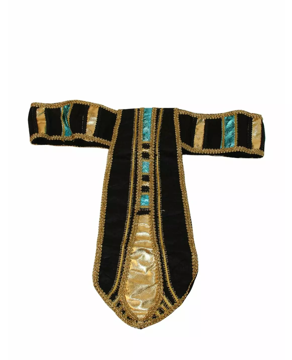 Hersk over pyramidene i Egypt Dette egyptiske beltet for voksne er laget av svart stoff. Det er dekorert med gullkanter og skinnende gull- og blå stoffdeler. Det festes enkelt rundt livet takket være et borrelåssystem. Dette tilbehøret vil være perfekt for å elegant fullføre et egyptisk kostyme under utkledningsfester med venner eller til karneval. Inkludert tilbehør: Belte
