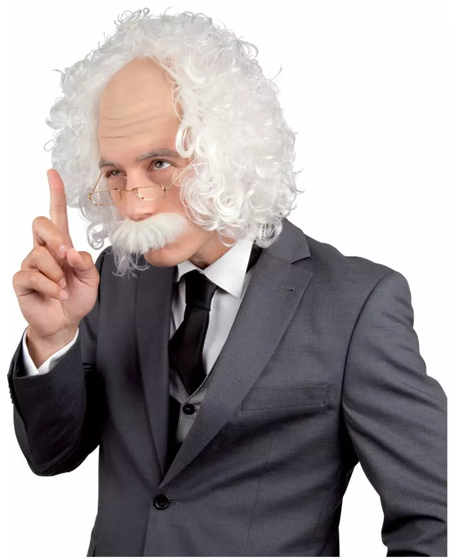 Med bart og briller! Denne imitasjonsparykken «Einstein» for voksne er svært representativ. Den vil være ideell for å fullføre kostymet ditt på kostymefester.