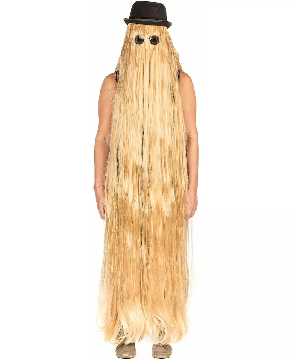 Det imponerende håret til en trassig amerikansk familie! Denne ekstra lange blonde parykken er for voksne. Blond i fargen, den måler 160 cm i lengden. Her er den ekte parykken til fetter den og den i en av de mest berømte amerikanske familiene! Den er så lang at den dekker hele kroppen din ned til føttene! Dette hårete monsterkostymet vil være perfekt for å opprettholde anonymitet og skremme de rundt deg under Halloween-temafestene dine! Tilbehør inkludert: Parykk 160 cm Stell: Børst etter bruk