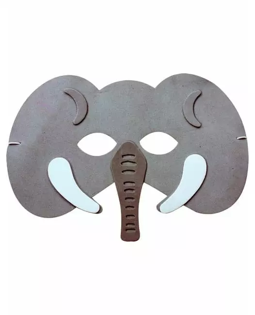 Bli en søt liten elefant til karneval. Denne elefantmasken for barn er laget av EVA (stivt skum). Den forestiller hodet til en elefant. En lang snabel er plassert foran på masken. Hvite støttenner er representert på sidene. Denne masken sitter enkelt på ansiktet ditt ved hjelp av en strikk. Dette tilbehøret vil være perfekt for å fullføre et elefantkostyme til en sirkusfest eller karneval. Inkludert tilbehør: Maske. Materiale: EVA.