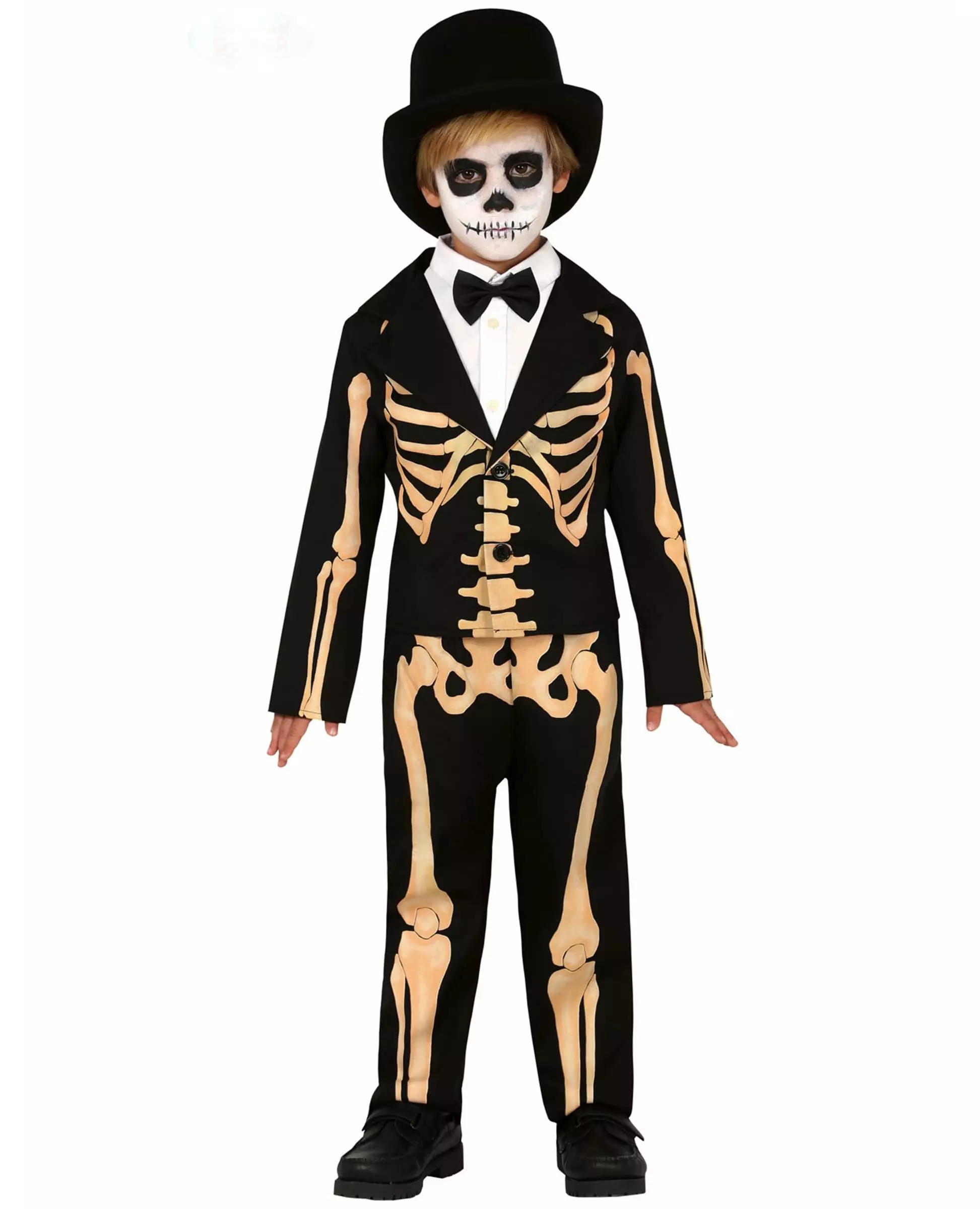 Stilig skjelettkostyme for gutter Et stilig skjelettkostyme til Halloween. Dette stilige skjelettkostymet for gutter består av en jakke og bukse (skjorte, sko og hatt er ikke inkludert). Barnekostymet inkluderer: Jakke, Bukse