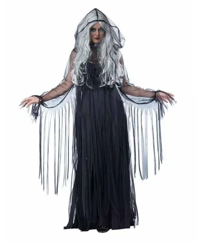 Elegant spøkelseskostyme til kvinner i svart Halloween