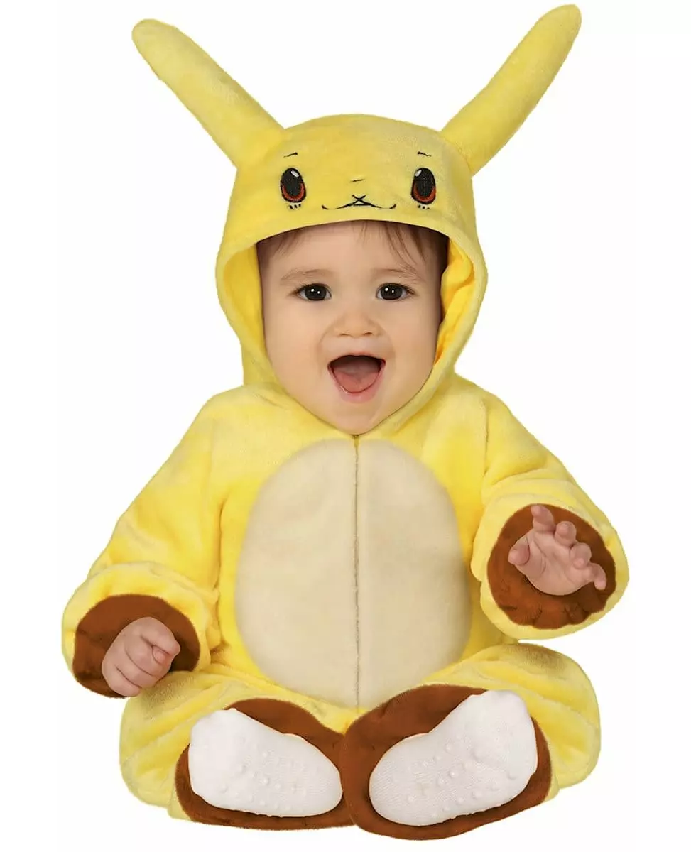 Pika Pika Dette lille gule elektriske mann-kostymet for babyer består av en jumpsuit. Denne jumpsuiten forestiller en berømt elektrisk skapning helt i gult. Den er dekorert med en enkel lukking foran. Dette antrekket vil være behagelig for babyen din å ha på seg og mykt når du berører det takket være den plysjeffekten. En hette med store ører og en hale sydd på ryggen er også tilgjengelig. Dette kostymet vil være perfekt for å forvandle babyen din til en liten elektrisk gul mann under karnevalet! Inkludert tilbehør: Jumpsuit Hale Materiale: 100 % polyester Stell: Håndvask