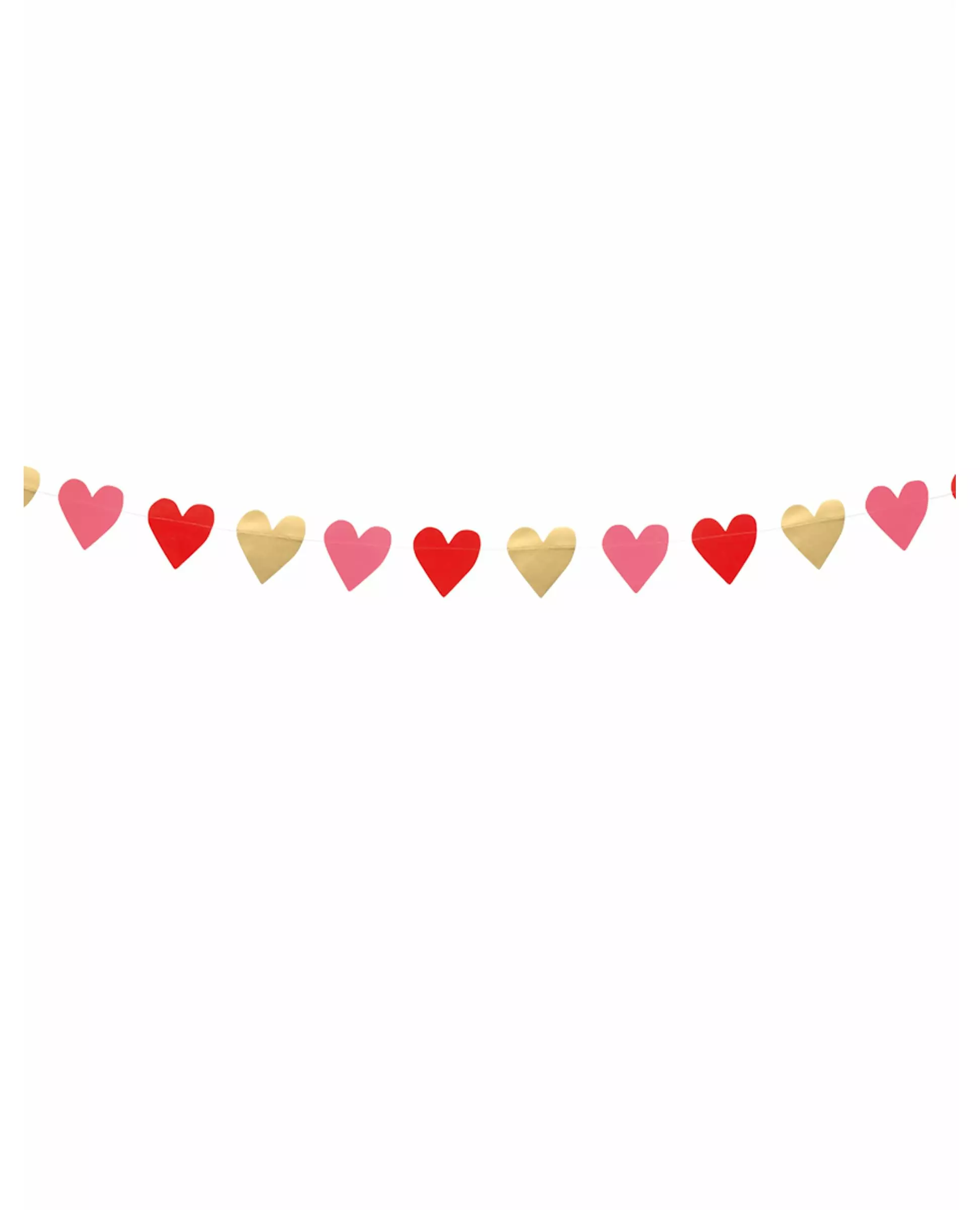 En vakker dekorativ girlander! Denne girlanderen er laget av små hjerter i forskjellige farger. Den måler omtrent 2 meter og er dekorert med små papphjerter i rosa, rødt og gull. Denne girlanderen vil være perfekt for å dekorere et rom til Valentinsdagen eller en kjærlighetstemafest! Inkludert tilbehør: 1 girlander Materiale: Papp