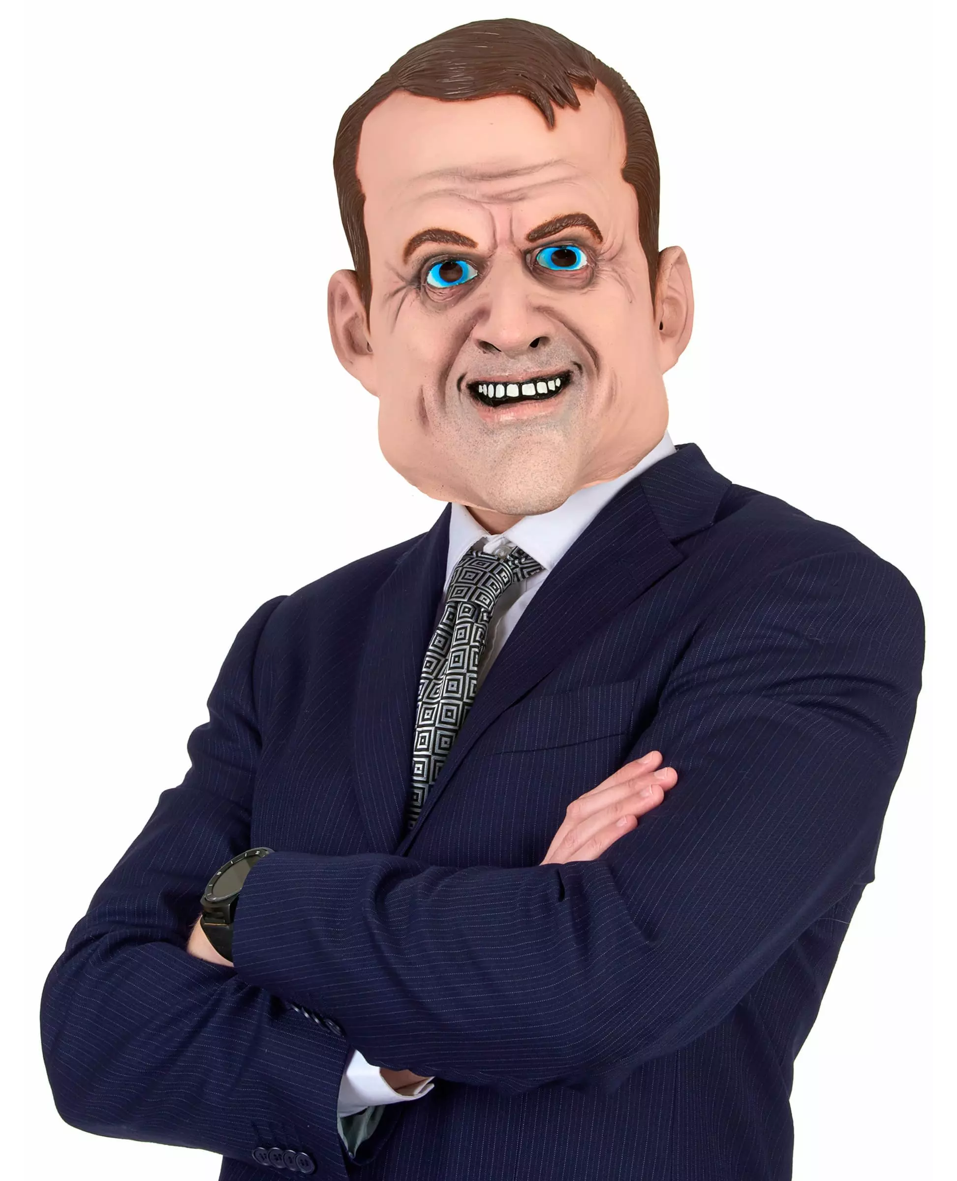 Karisma Denne humoristiske lateksmasken representerer ansiktet til Emmanuel Macron. Den vil dekke ansiktet ditt fullstendig. Masken er malt med stor detaljrikdom, og en skumkube inni den sørger for at masken sitter godt fast på ansiktet ditt. Øyne, munn og nese er åpne for ikke å hindre sansene dine. Inkludert tilbehør: Maske Materiale: Lateks