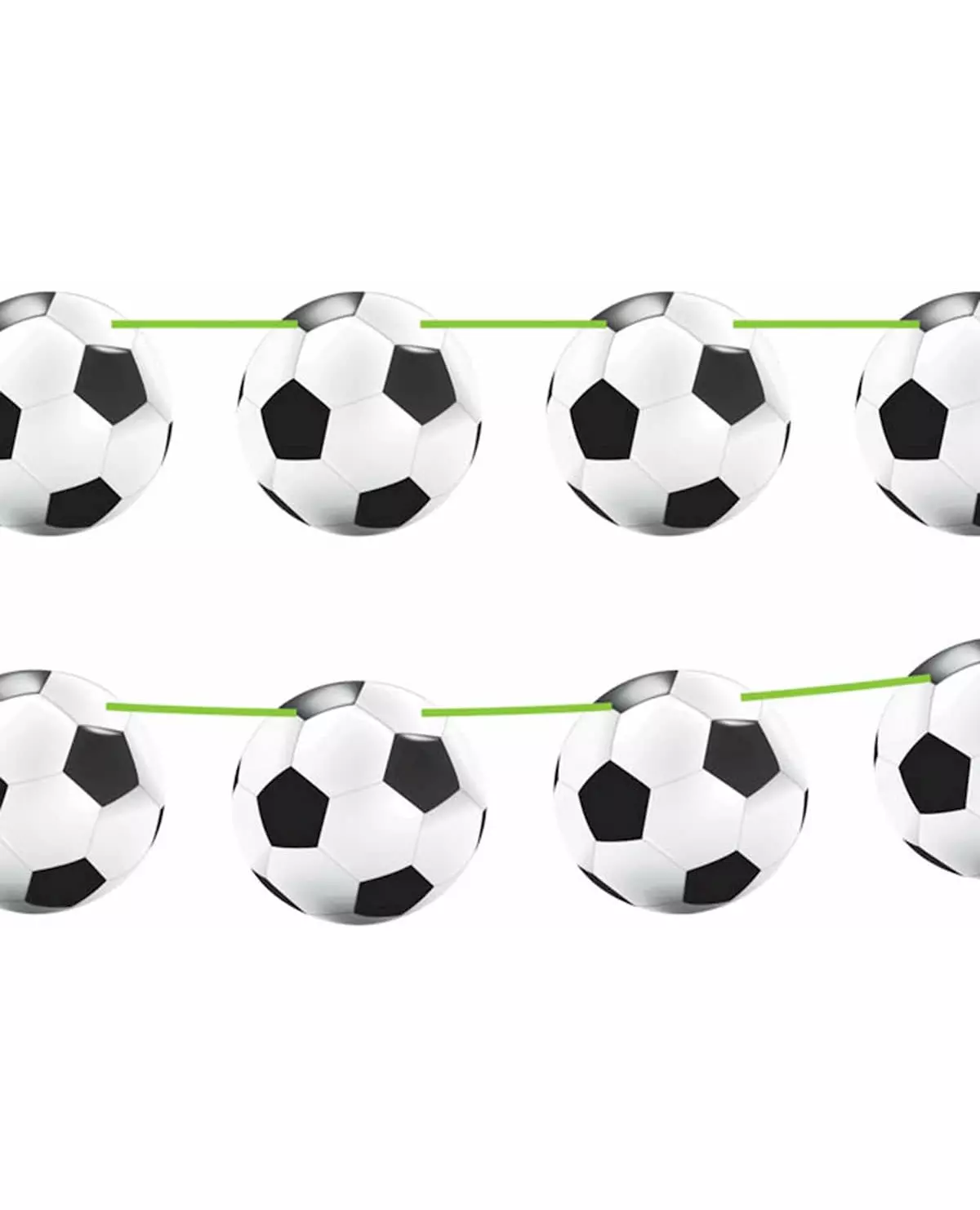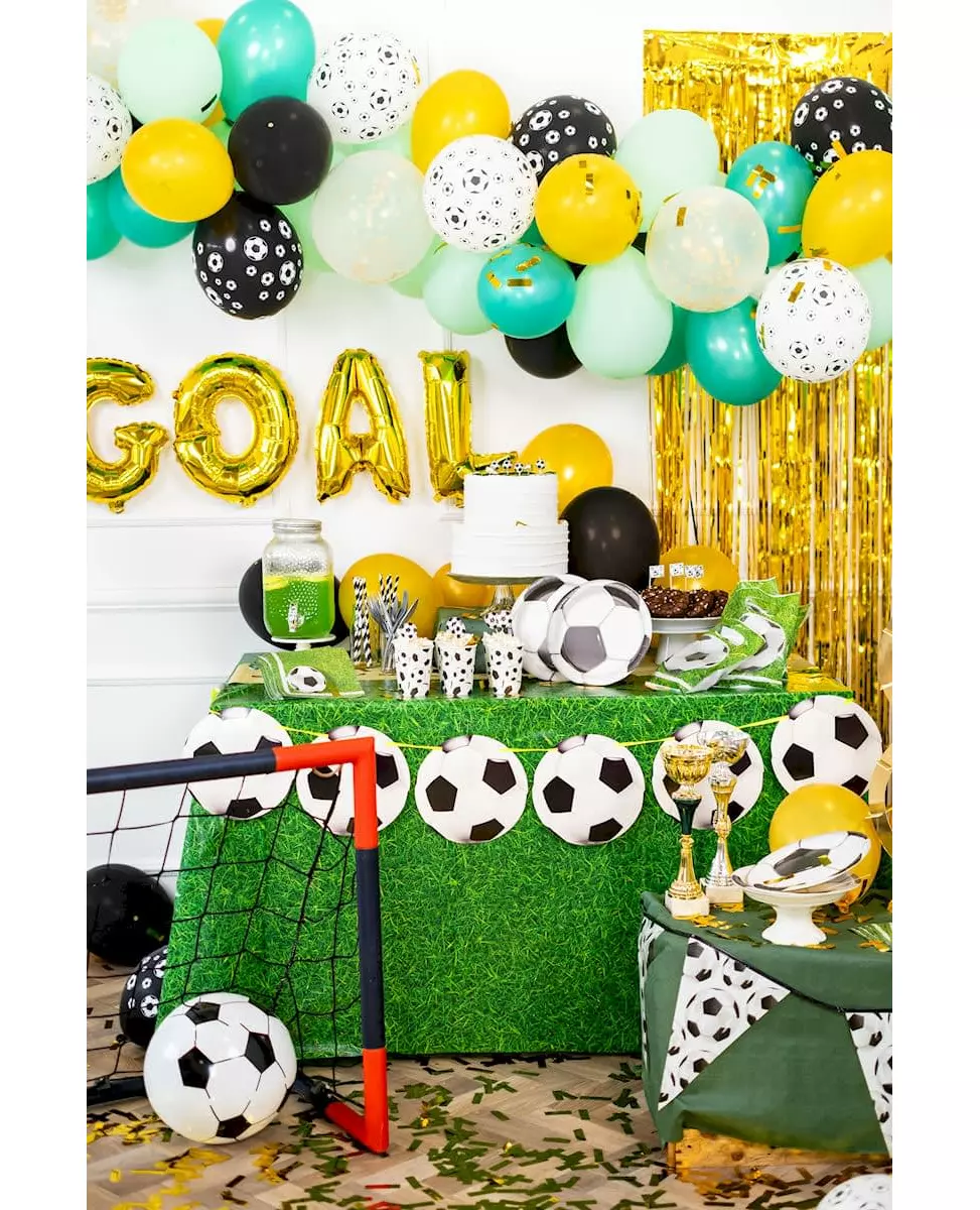 Balloons fill the room! This garland is made up of 15 cardboard balloons. Each one measures 22 cm in diameter and is connected with a satin green ribbon matching the color of the grass! The garland measures 10 meters and is easily attached to the wall thanks to the ribbon! Immerse yourself in the world of football and show your passion for this sport with a 100% football decoration!. Accessories included: Garland Material: Cardboard