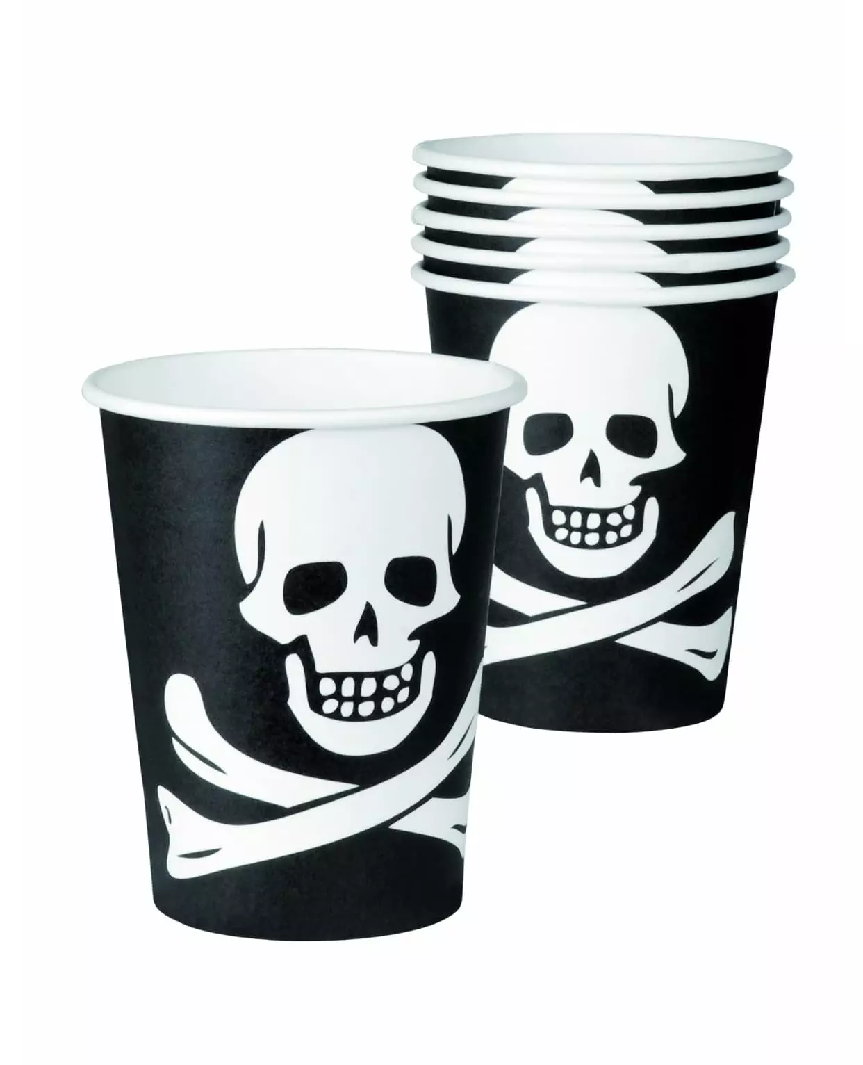 This set includes 10 pirate cups with a capacity of approximately 21 cl. Black in color, they have a white skull print. These cups are ideal for decorating your table during a costume party or a pirate-themed birthday!. Accessories included: 10 cups
