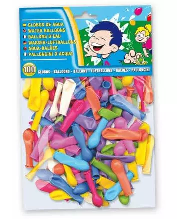 100 Water Bombs 100 water bomb balloons in various colors. These balloons are made of natural rubber and are completely biodegradable. Material: Natural rubber Natural rubber