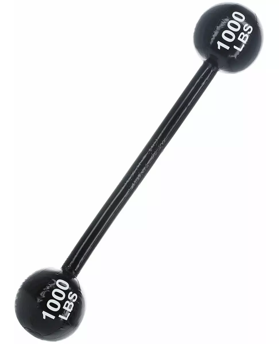Perfect for developing biceps This dumbbell is inflatable. It is black with the inscription 1000 LBS in white on each side. It measures approximately 124 cm in length. These dumbbells will be perfect to complete an 80s sportsman costume for a costume party under the sign of humor. Accessories included: Inflatable dumbbell, Material: 100% PVC,
