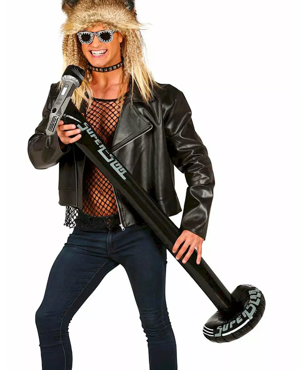 Sing your best songs This inflatable microphone stand is made of plastic. It measures approximately 116 cm. You can inflate it with air through the valve provided for this purpose. This inflatable microphone will be perfect to complete a rocker costume for a fancy dress party! © Copyright Widmann SRL. Accessories included: 1 Inflatable microphone Material: Plastic