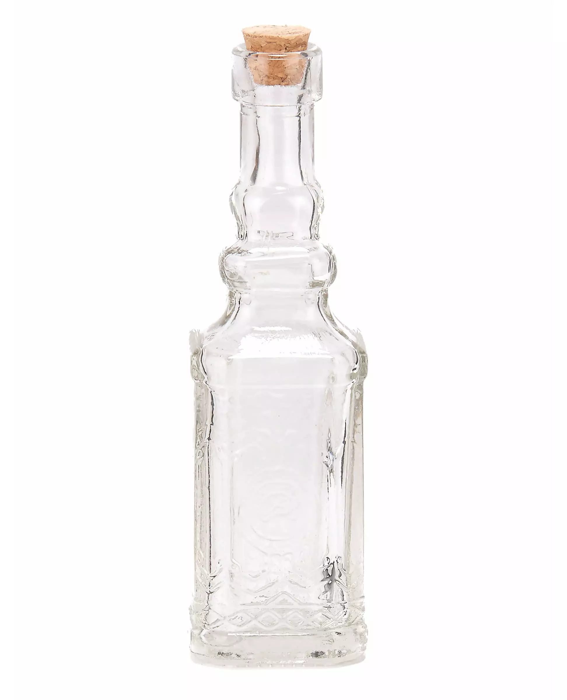 This miniature is made of transparent glass and has a capacity of approximately 35 ml. It measures approximately 12 cm in height and comes with a small cork stopper. This miniature will be perfect for completing your table decoration by placing colored sand or syrup inside. Material: Glass