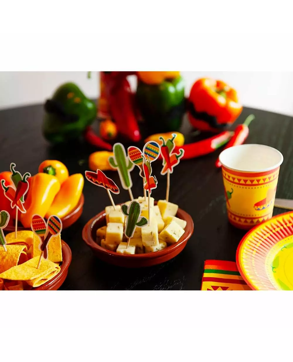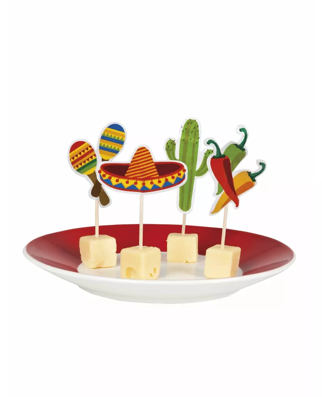 Fiesta Time! This bag includes 12 wooden picks decorated with Mexican-themed vignettes. The sticks measure approximately 7 cm. They are decorated with Mexican hats, maracas, cacti and chili peppers, all in warm colors. For a Mexican evening, use these picks as an aperitif or dessert for a successful fiesta, for a birthday, for example, or a dinner with friends. Accessories included: 12 Picks Material: Wood, paper