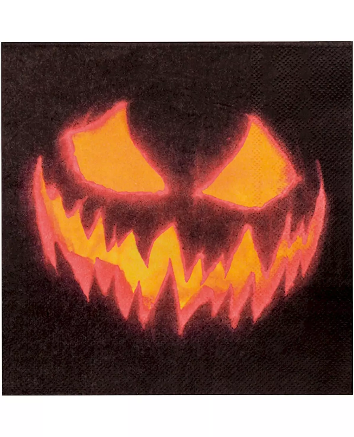 An evil pumpkin is coming to your table! This pack consists of 12 terrifying pumpkin paper napkins. Folded, they measure approximately 16.5 x 16.5 cm. And once unfolded, 33 x 33 cm. The napkins are black. They are decorated with the image of a frightening pumpkin with a demonic smile. These scary pumpkin napkins are perfect to complete your table decoration for Halloween. Accessories included: 12 napkins Material: Paper