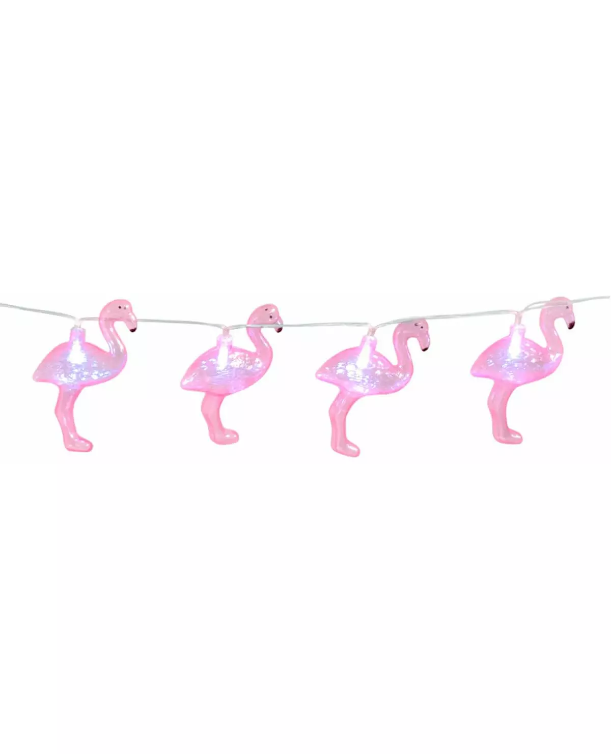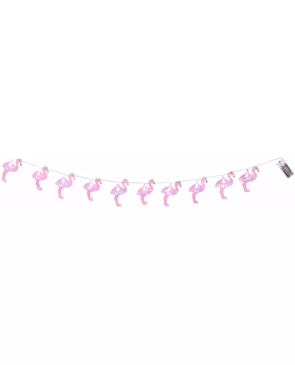 Bright pink flamingos for a Hawaiian party! This light garland features small pink flamingos and is approximately 140 cm long. It lights up with 2 AA batteries (not included). Add some light to your Hawaiian-themed party with this flamingo garland!. Accessories included: 1 Light garland